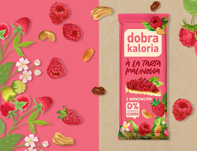 Orzechy nerkowca (34 %), rodzynki (28 %), pasta daktylowa, orzechy nerkowca prażone (5 %), chrupki komosowe (komosa ryżowa, błonnik z cykorii, sok z buraka w proszku), maliny liofilizowane (1 %), naturalny aromat.