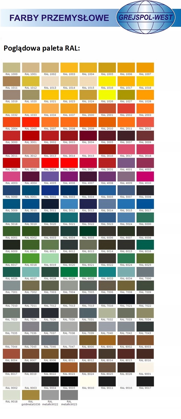 Dostępna w pełnej palecie RAL, NCS, BS.