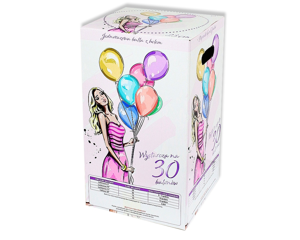 Butla przeznaczona jest do samodzielnego pompowania helem balonów zarówno lateksowych (gumowych) jak i foliowych.