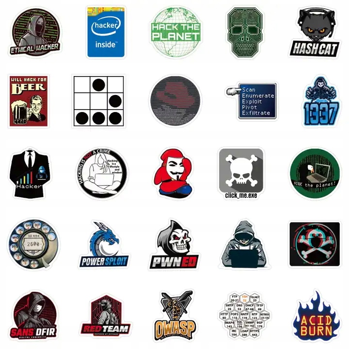 NAKLEJKI HAKER PROGRAMISTA WODOODPORNE OZDOBNE MIX WLEPY NA LAPTOPA 50 szt