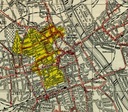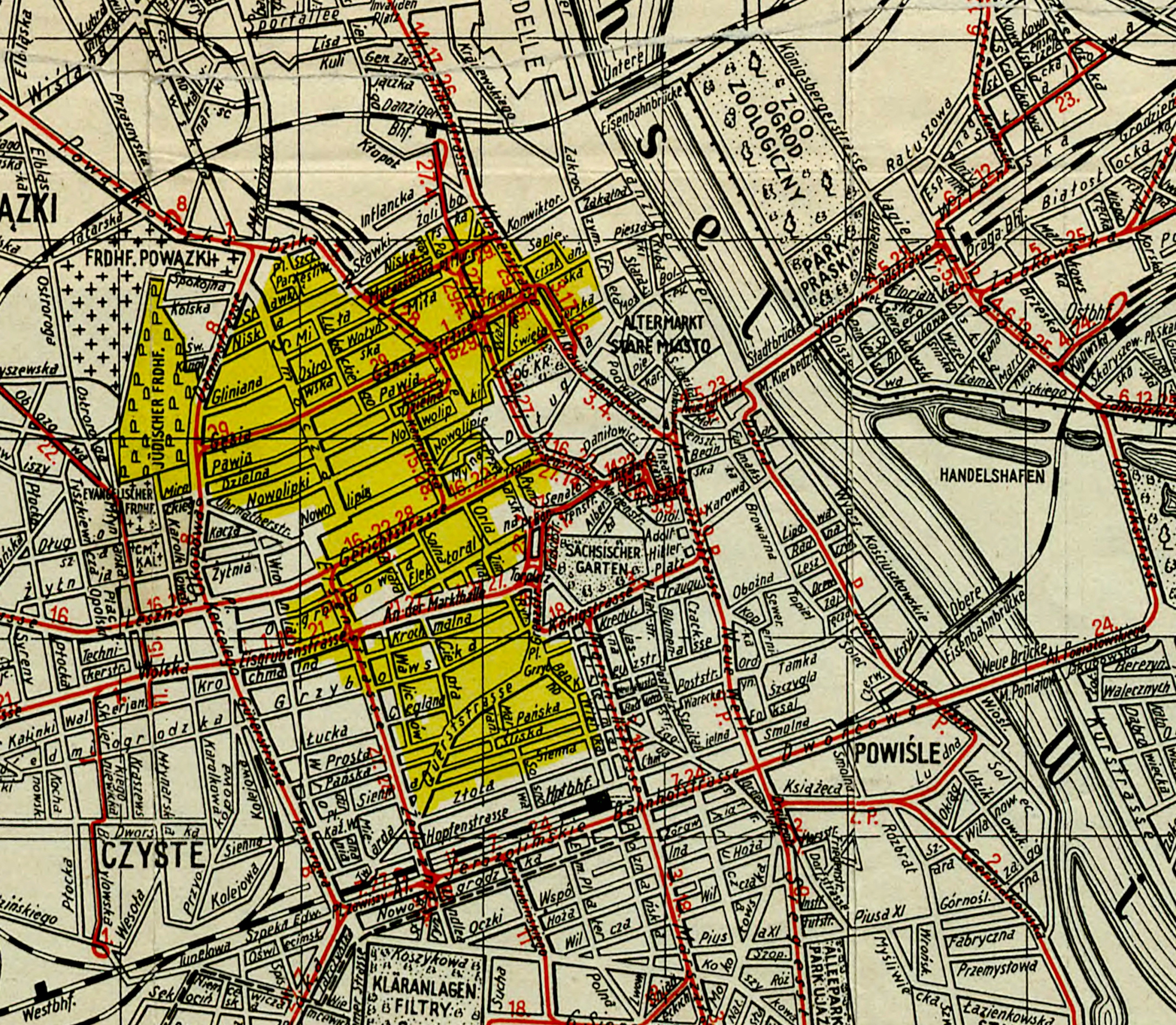 Dzielnica Żydowska zaznaczona żółtym kolorem