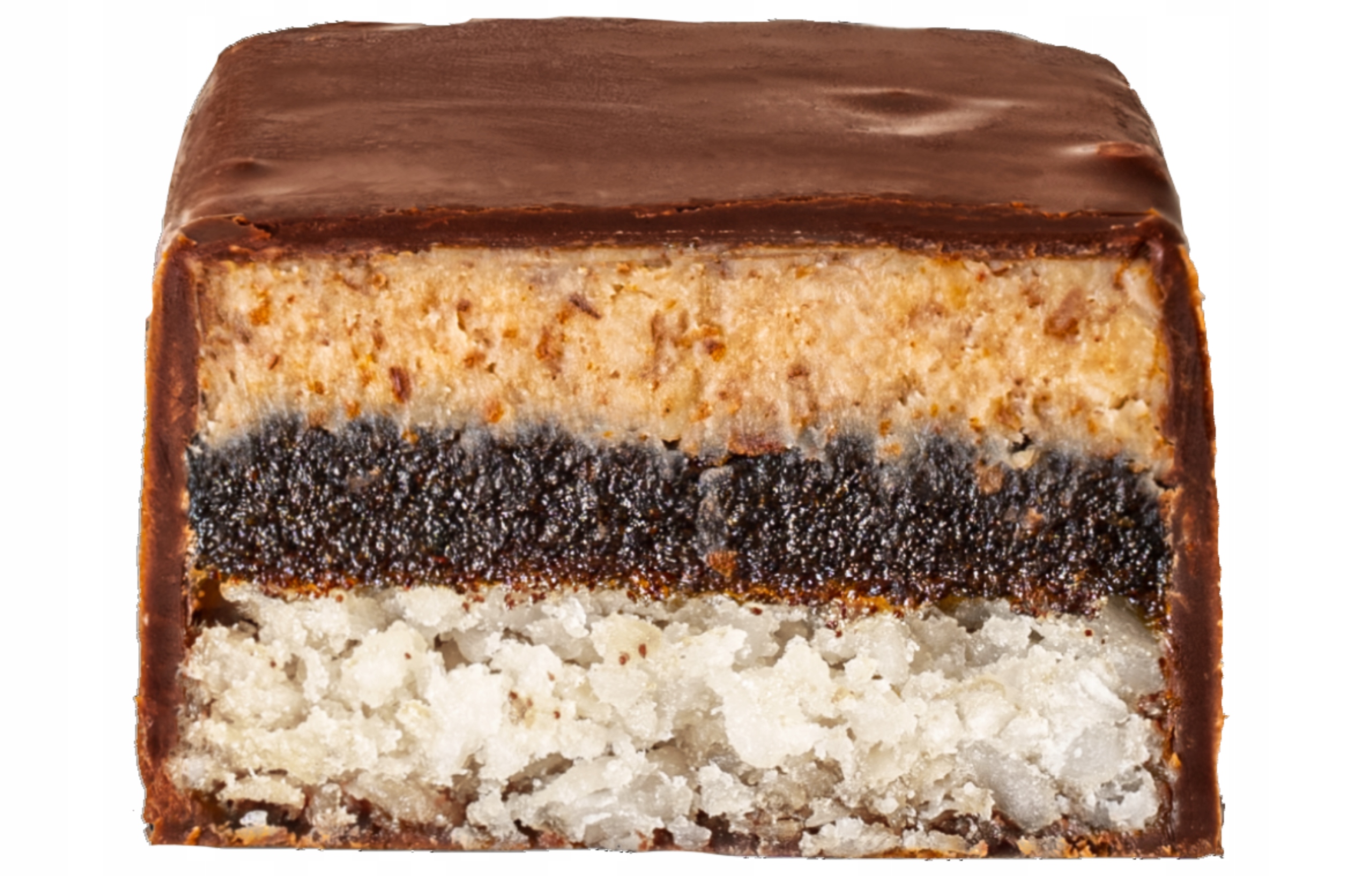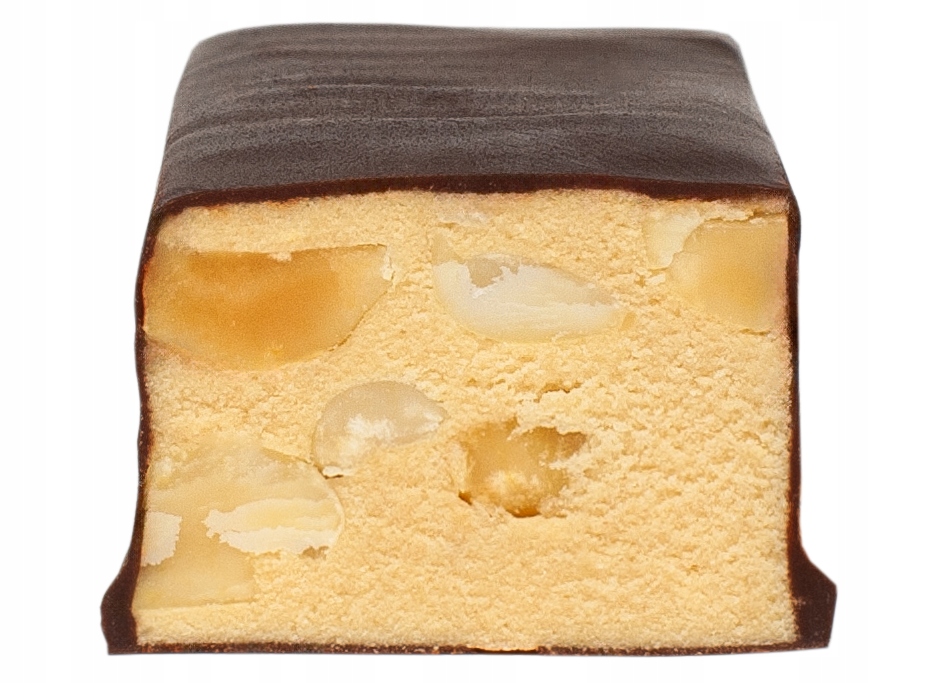 Składniki: koncentrat soku jabłkowego, migdały (30,2%), izolat białka grochu (21%) (zawiera 85% białka), polewa czekoladowa (12,2%) (miazga kakaowa, słodzik maltitol, masło kakaowe, kakao w proszku o obniżonej zawartości tłuszczu, emulgator lecytyna, naturalny aromat waniliowy), guma ksantanowa, naturalny aromat waniliowy. Zawartość białka roślinnego - 25%.