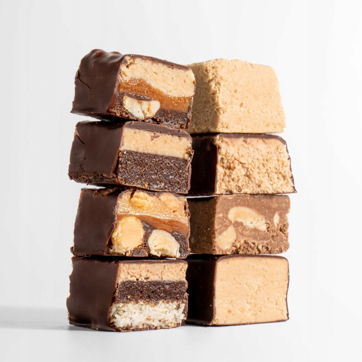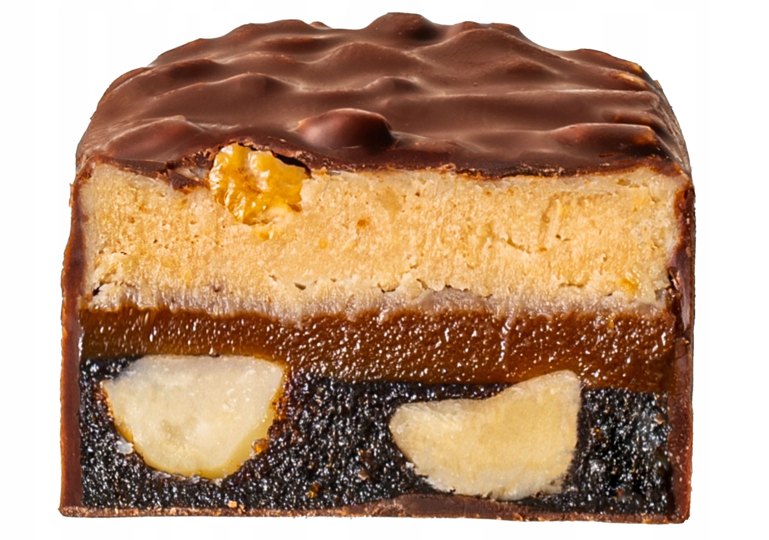 Składniki: karmel (24,1%) (ekstrakt z kokosa, koncentrat soku jabłkowego, skrobia kukurydziana), daktyle, orzechy ziemne (20%), orzechy nerkowca (16,6%), polewa czekoladowa (13,2%) (miazga kakaowa, słodzik maltitol, masło kakaowe, kakao w proszku o obniżonej zawartości tłuszczu, emulgator lecytyna, naturalny aromat waniliowy), różowa sól himalajska.