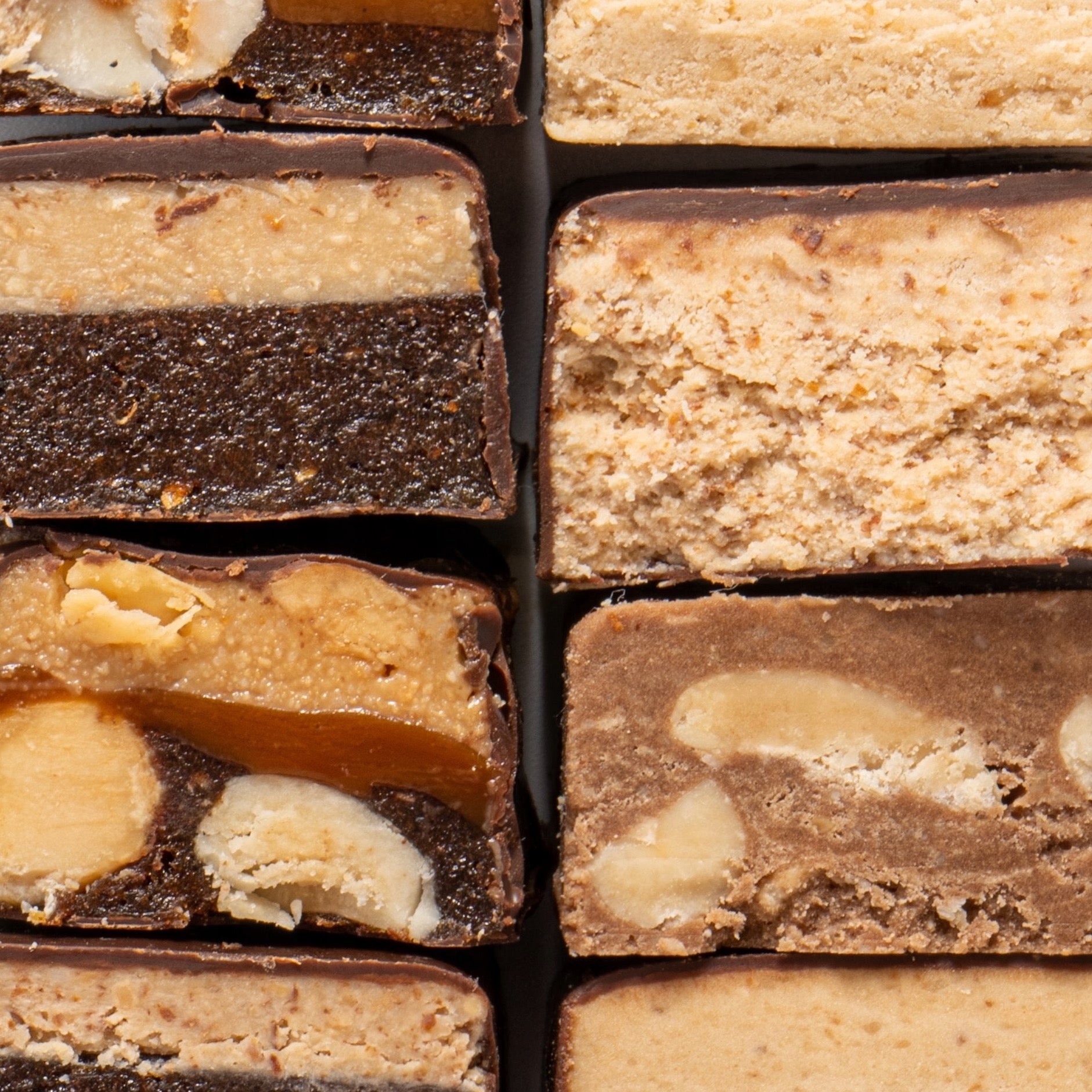 Składniki: daktyle, orzechy laskowe (23,7%), karmel (18,9%) (ekstrakt z kokosa, koncentrat soku jabłkowego, skrobia kukurydziana), polewa czekoladowa (13,2%) (miazga kakaowa, słodzik maltitol, masło kakaowe, kakao w proszku o obniżonej zawartości tłuszczu, emulgator lecytyna, naturalny aromat waniliowy), różowa sól himalajska.