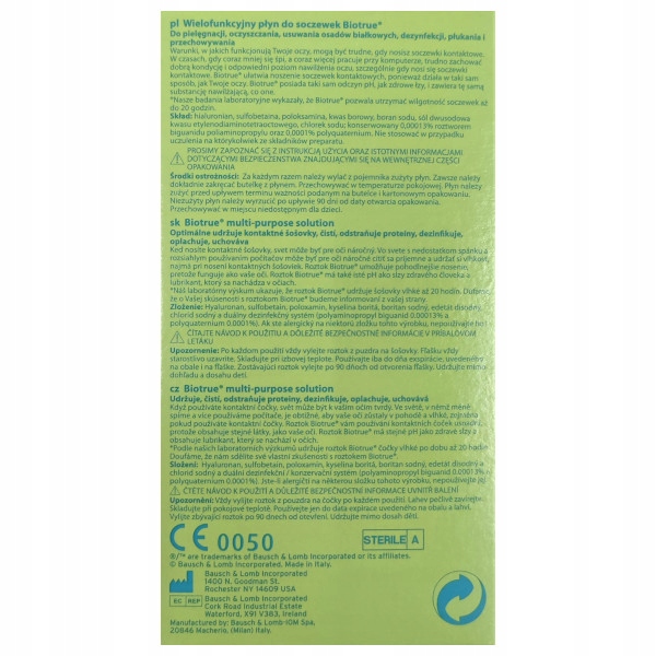 Biotrue chroni przed powstawaniem na powierzchni soczewek depozytów podrażniających oczy. Likwiduje także drobnoustroje chorobotwórcze.