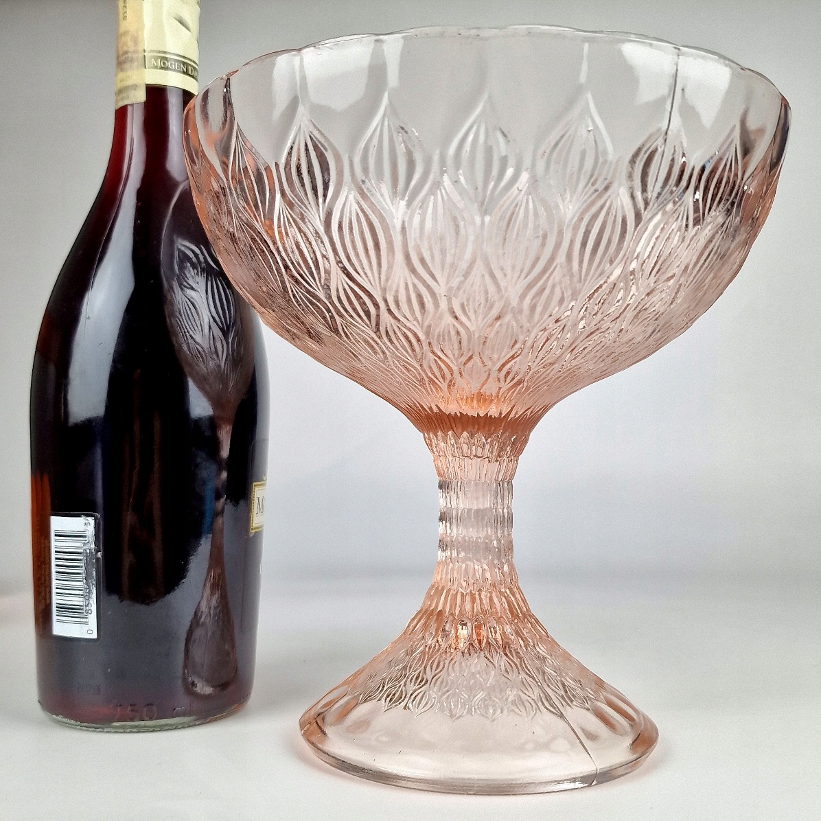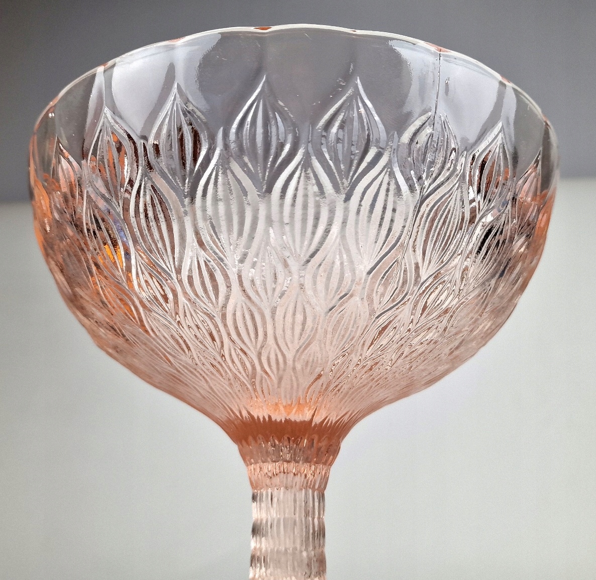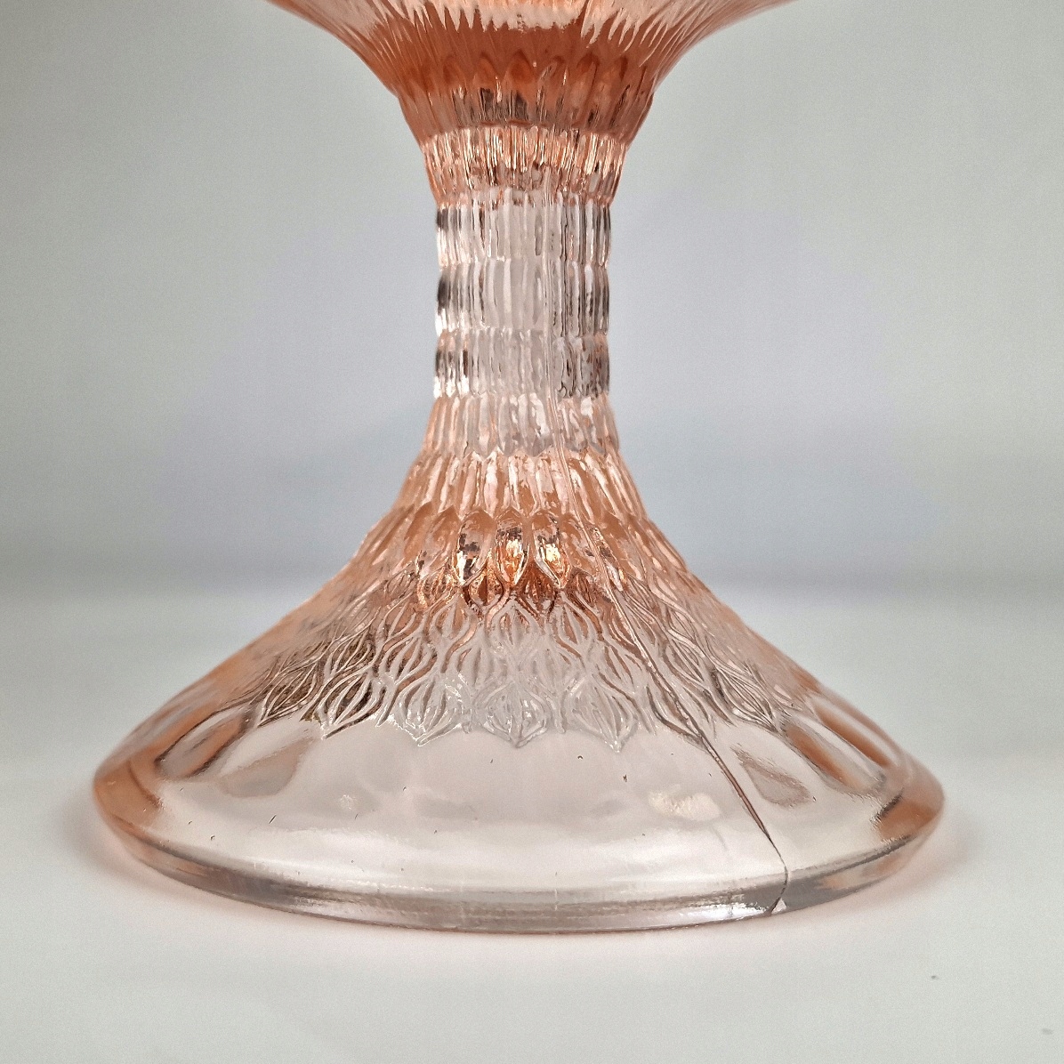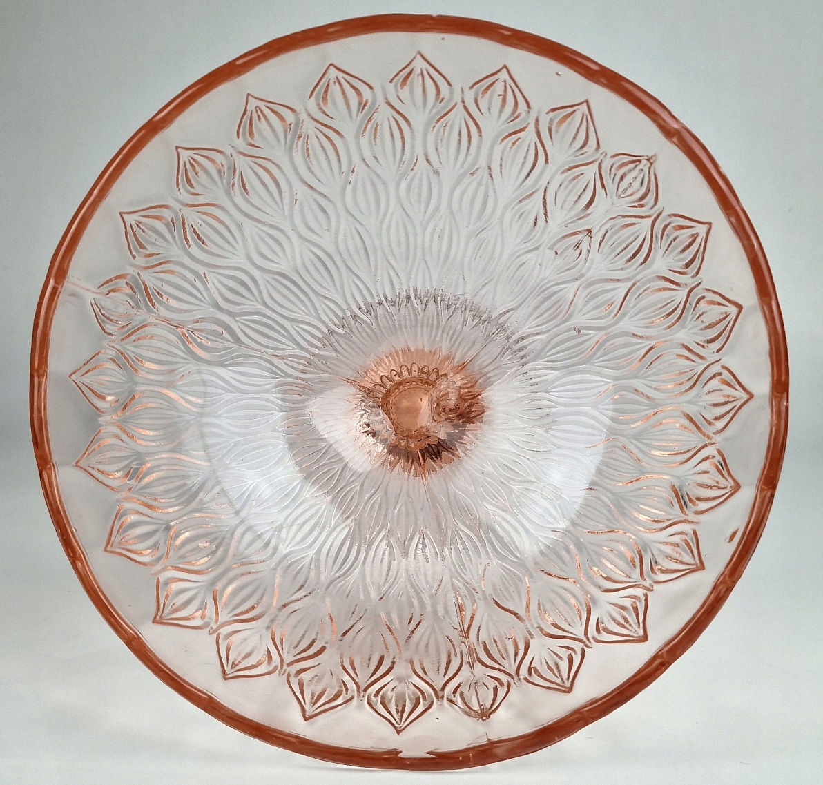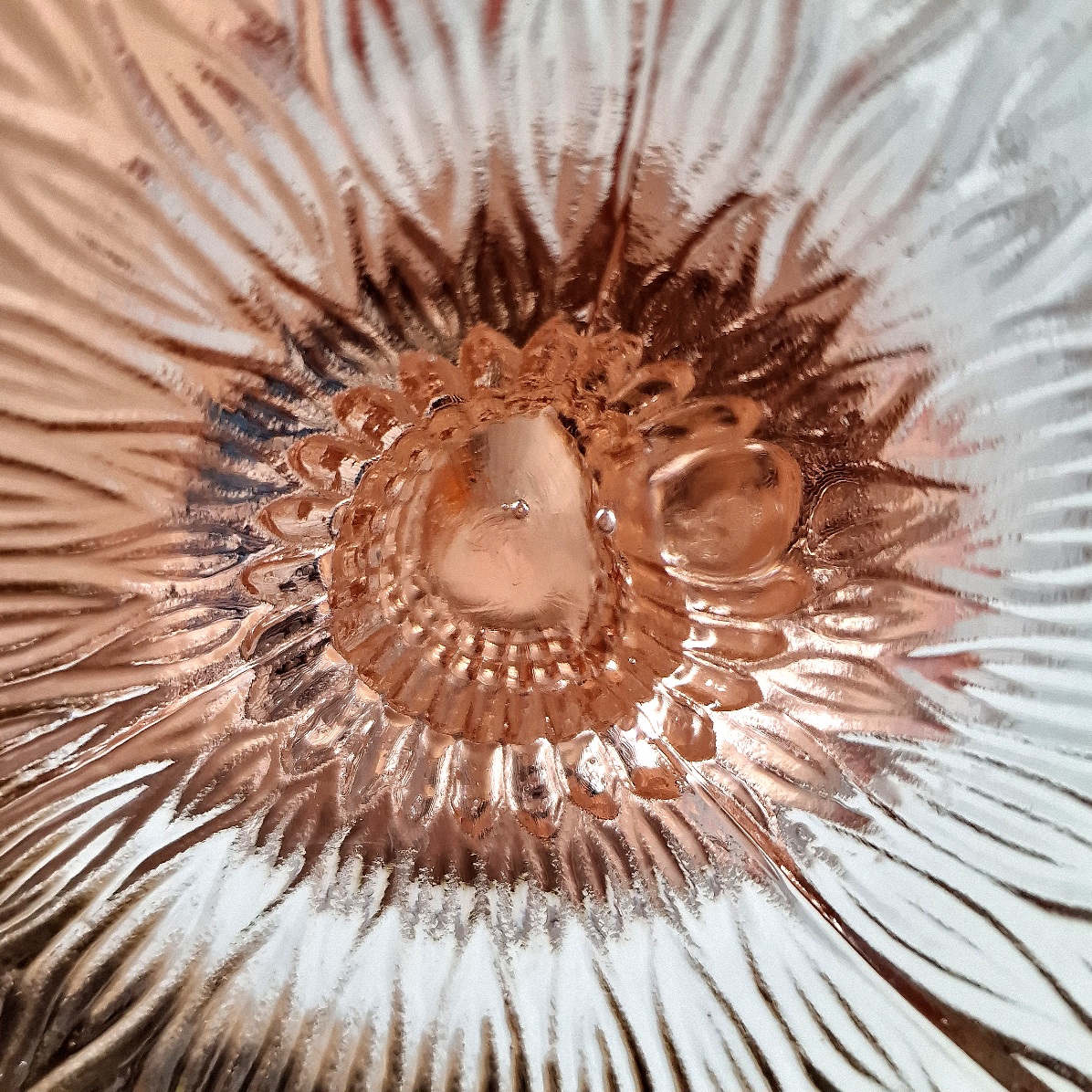 Szkło prasowane, barwione w masie na kolor rozalinowy .
