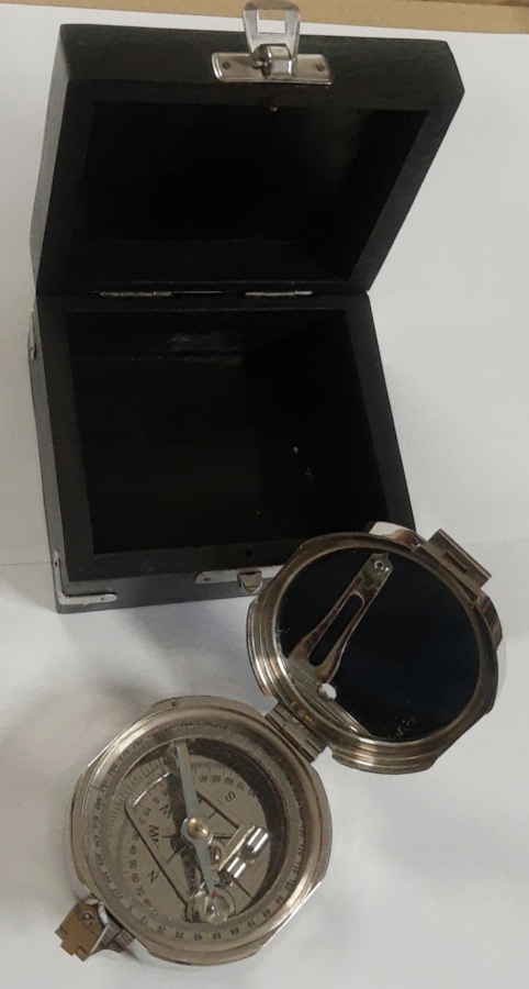 Używany - marynistyczny kompas - napis Natural Sine - więc prawdopodobnie to Stanley lub replika - tego nie jestem w stanie zweryfikować - wygląda na sprawny aczkolwiek nie znam się za dużo - razem z pudełkiem.
