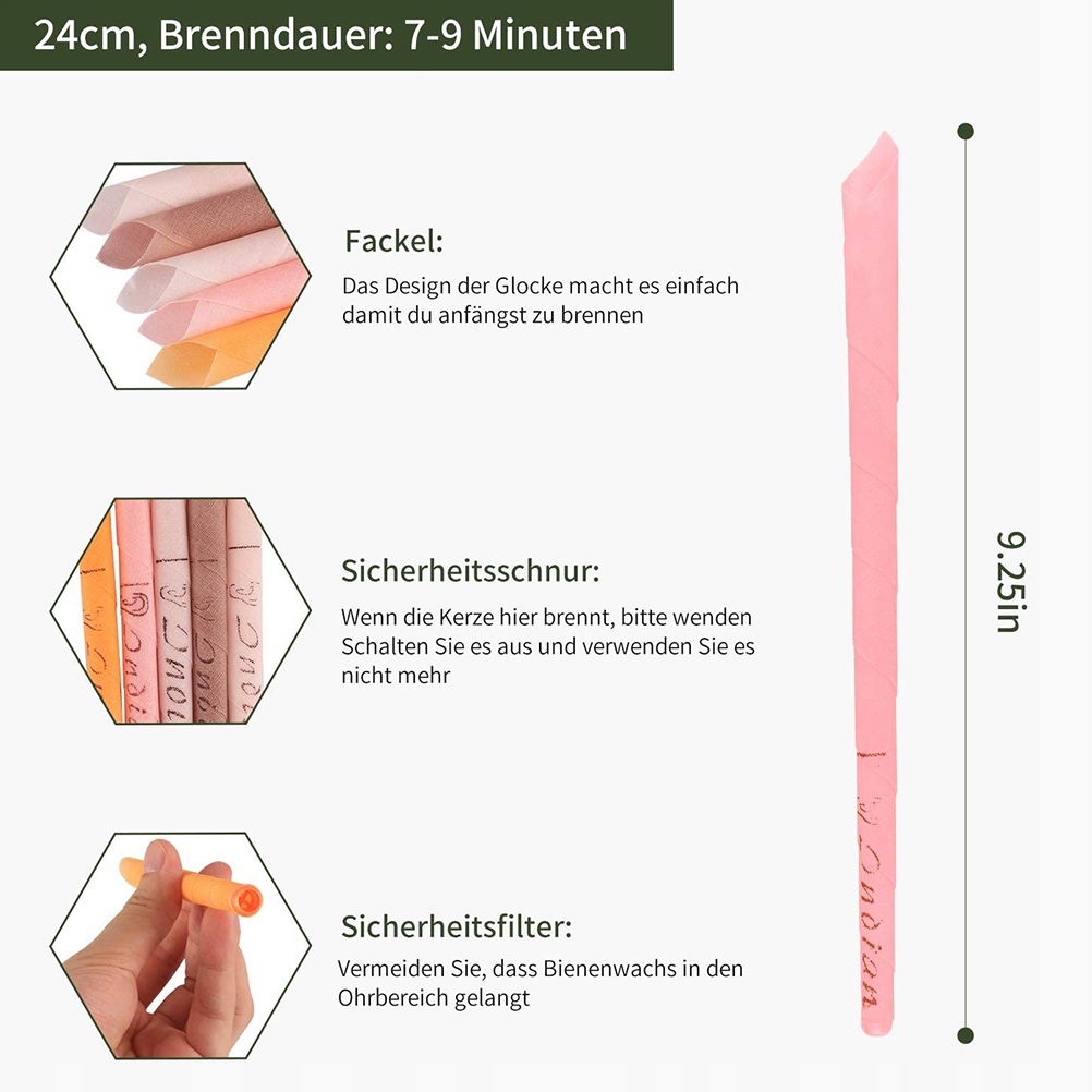 3. Świeca do uszu: Wosk pszczeli pali się równomiernie i prawie bez dymu, bez dodatkowych substancji chemicznych dla zapachu.