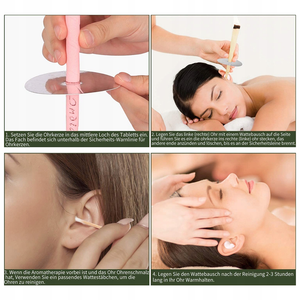 5. Bezpieczny materiał: w naszych świecach do uszu nie stosuje się pestycydów, chemikaliów ani szkodliwych składników. Zero substancji rakotwórczych uwalnianych w przeciwieństwie do parafiny, która uwalnia dym i toksyny. Dyski ochronne zapobiegają przedostawaniu się spalonych pozostałości do ucha. Jesteś więc całkowicie bezpieczny.