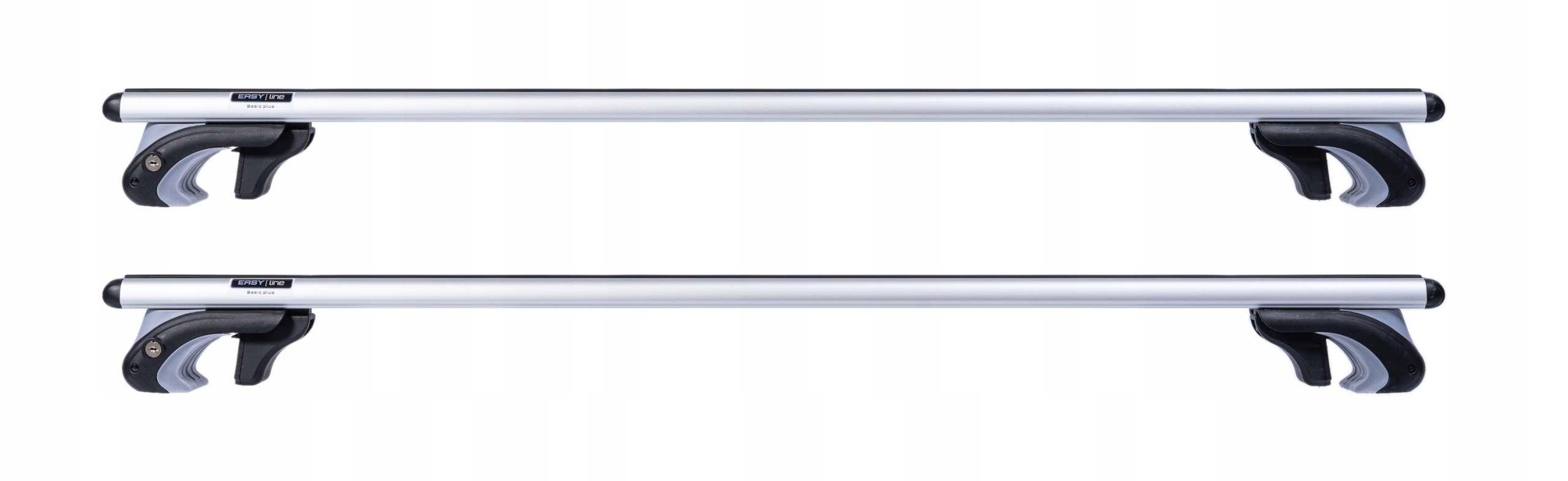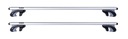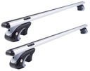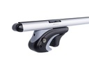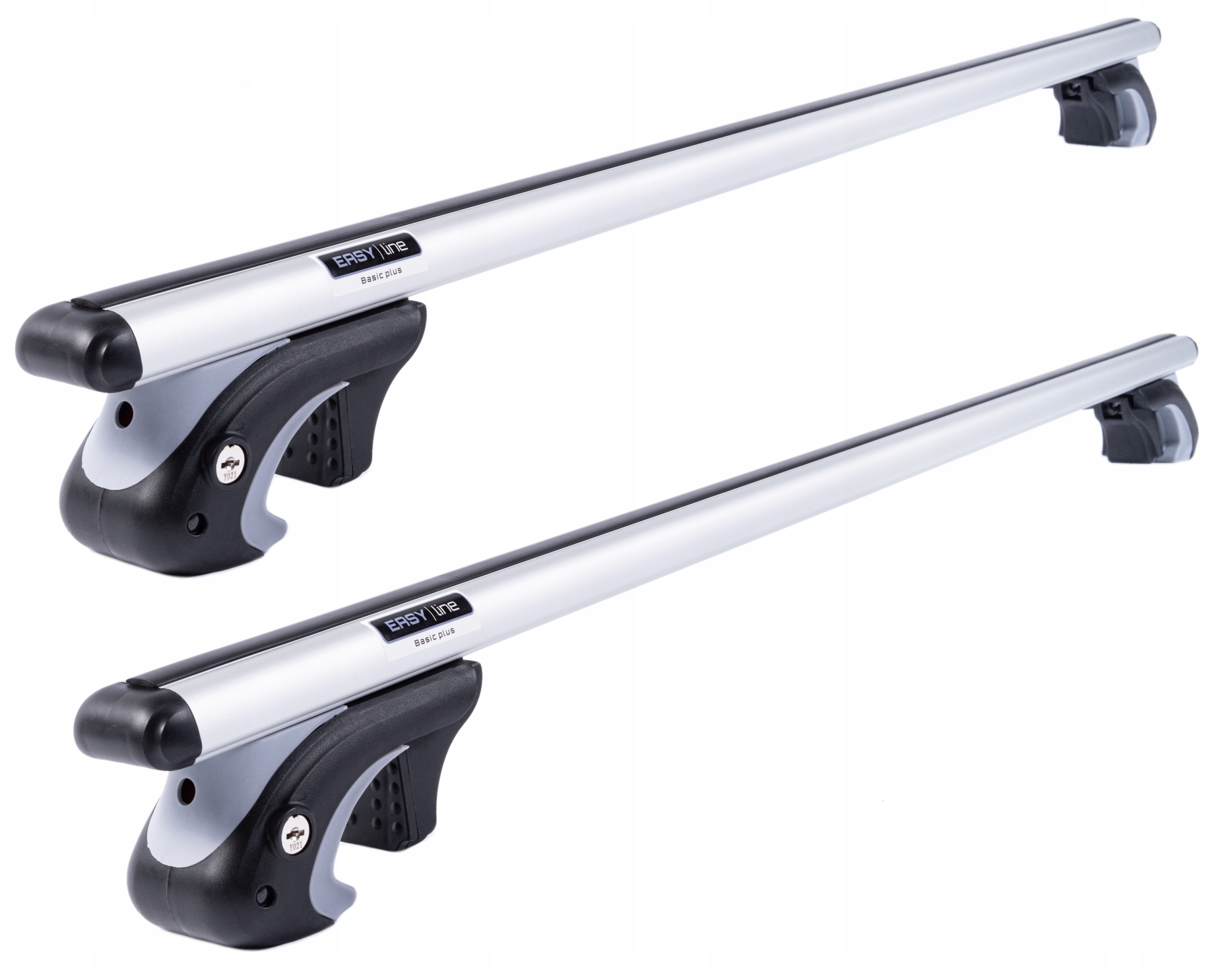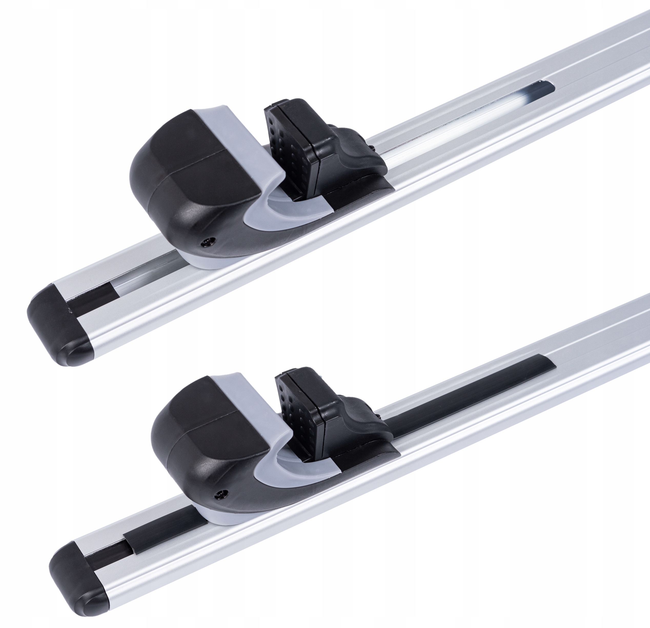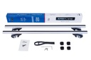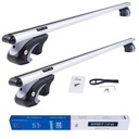 Kompletny aluminiowy bagażnik bazowy pasujący do większości samochodów posiadających zwykłe (otwarte) relingi dachowe.