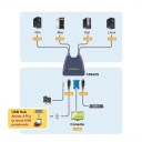 4-portowy przewodowy przełącznik KVM USB VGA/Audio - jedna konsola USB steruje czterema komputerami z portami USB
