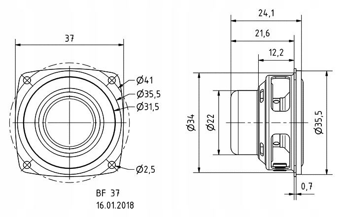 Może być montowany w obudowach zamkniętych i otwartych. Dobrze sprawdza się także jako głośnik wysokotonowy.