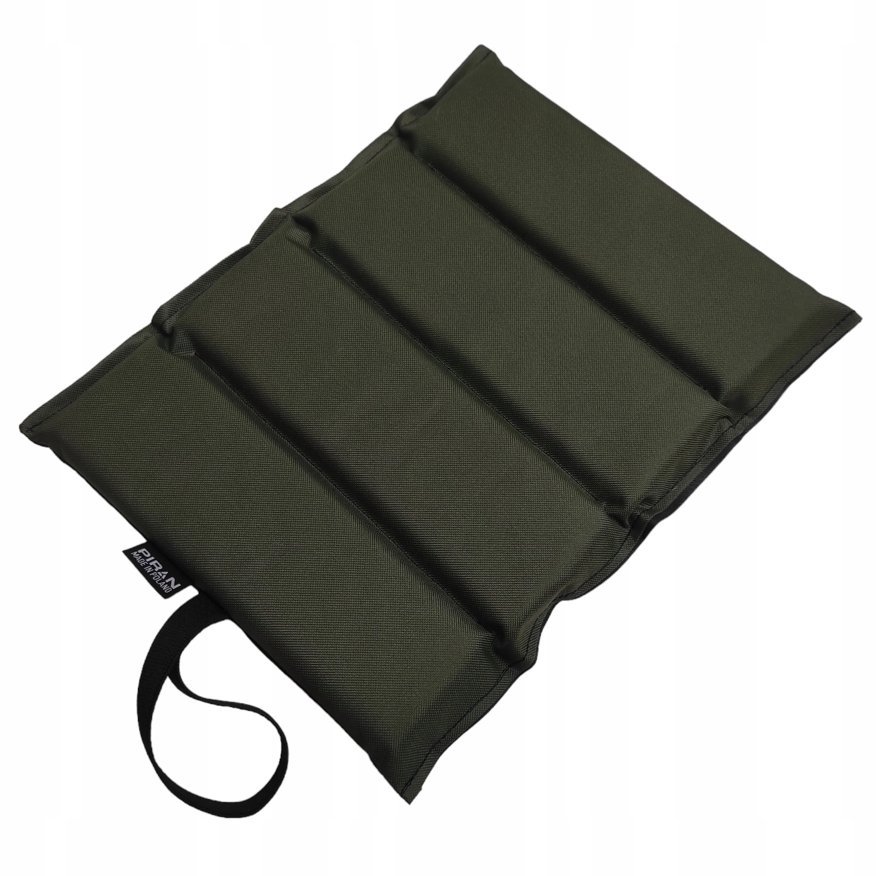 Wewnątrz maty umieściliśmy piankę o grubości 2 cm która zapewni wygodę siedzenia oraz izolację termiczną od podłoża. Mimo grubości łatwo się kompresuje i matę bez problemu schowasz na przykład w zewnętrznej kieszeni plecaka. Doszytą pętlą z gumy łatwo zepniesz matę Donkey Pad w kompaktowy pakiet. 4 panele umożliwiają złożenie spodnią powierzchnią do siebie, dzięki czemu góra siedziska nie brudzi się w transporcie.