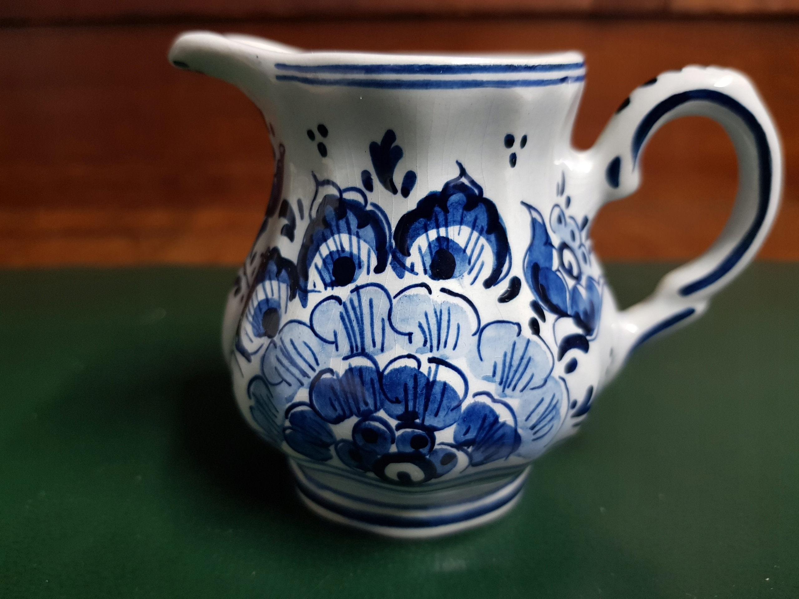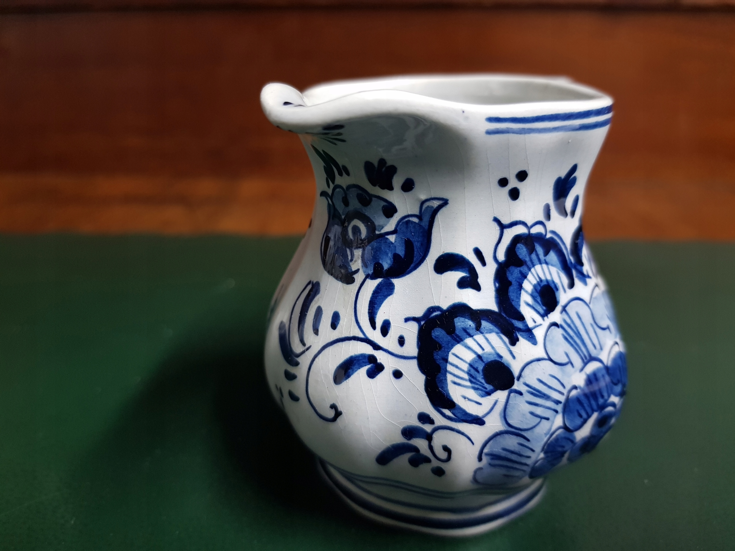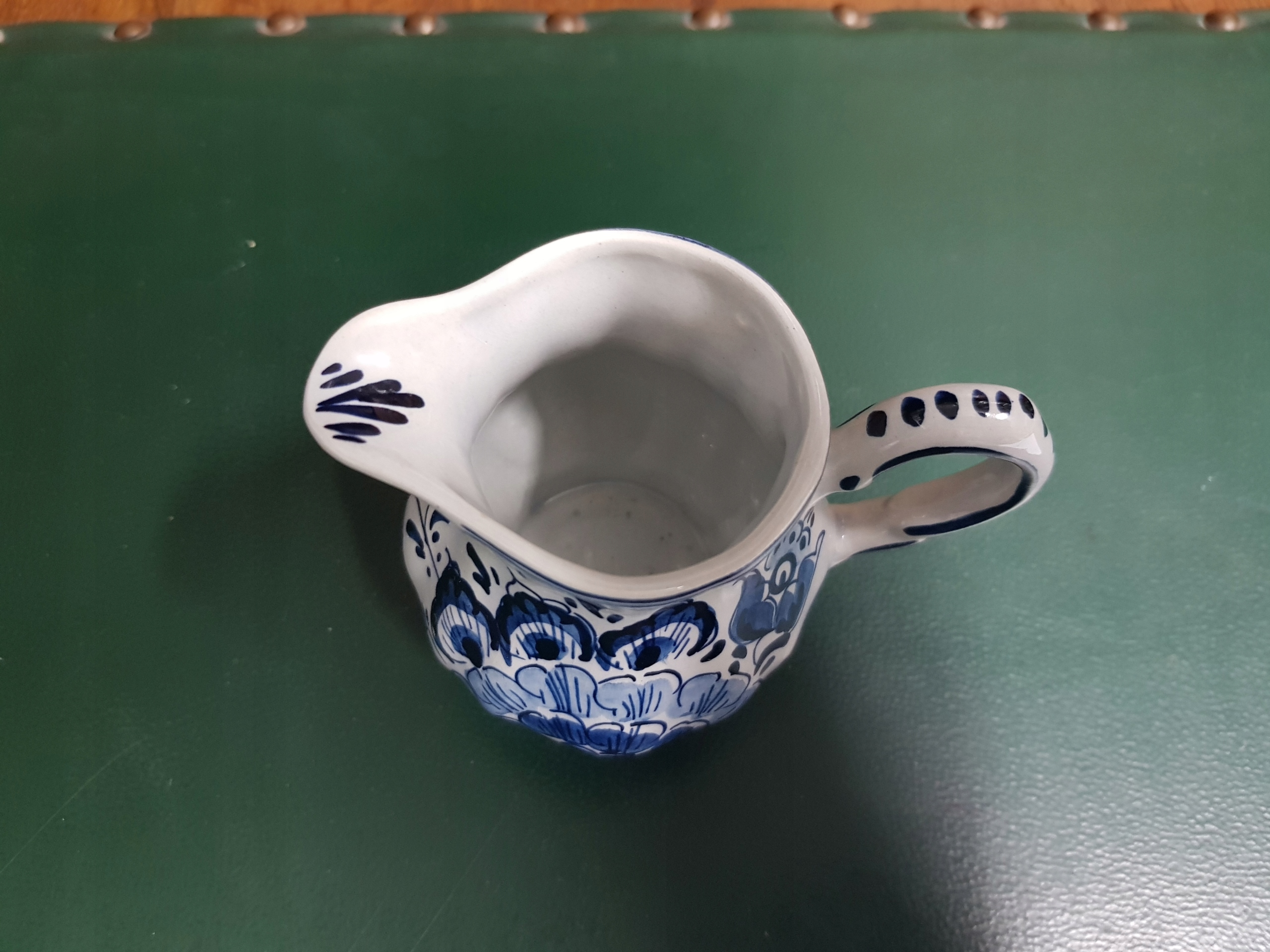 Przedmiotem aukcji jest mały mlecznik Delft.Motyw kwiatowy
