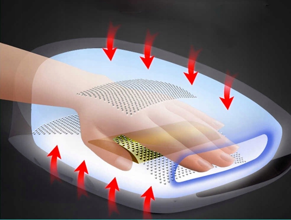 Silne i skuteczne działanie na strukturę receptorów w dłoni znacznie przewyższające masaż klasyczny, czy masaż innym masażerem