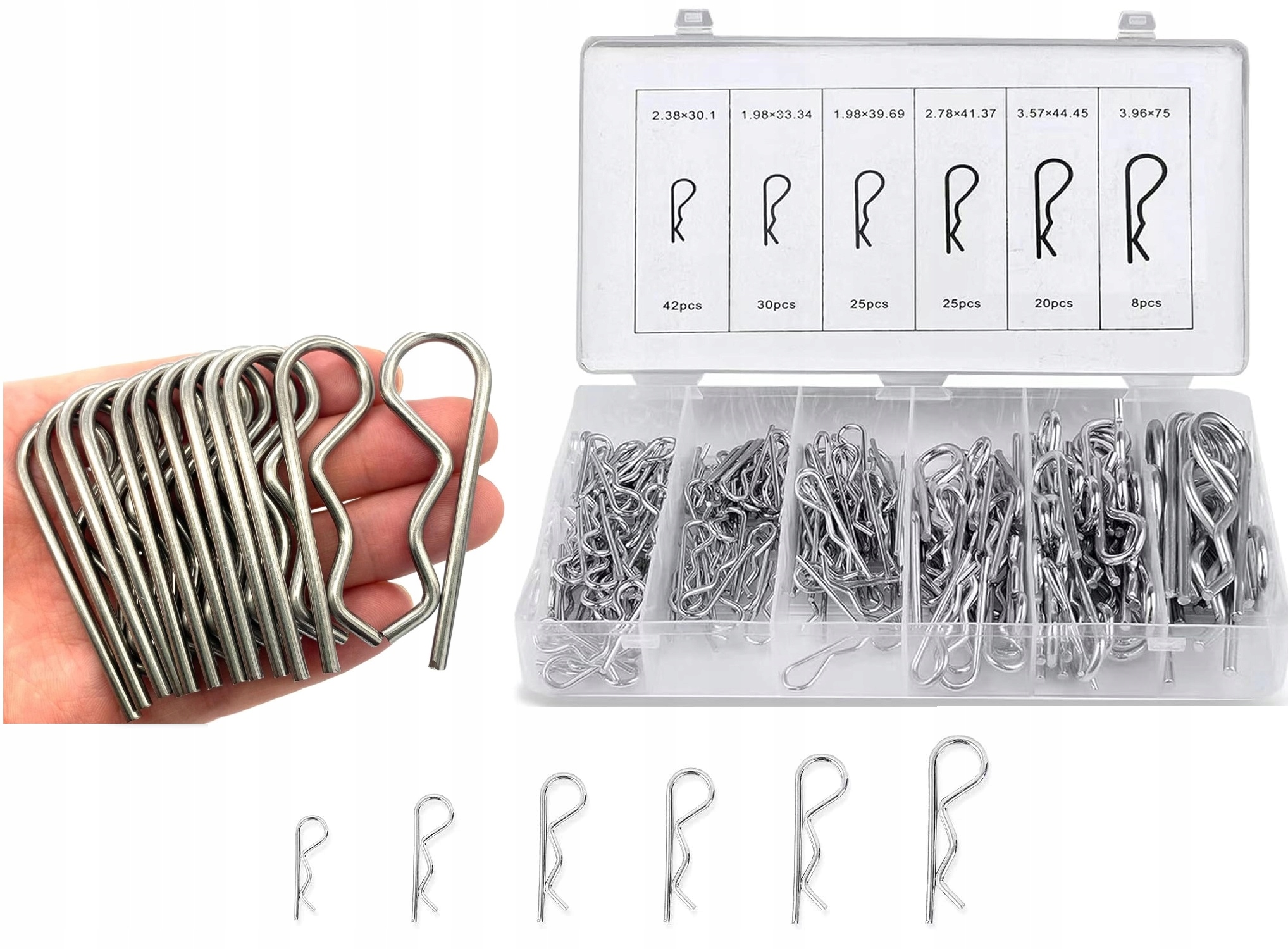 ✅ Zestaw zawiera zawleczki sprężynowe, rozginane o różnych wymiarach.
