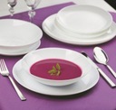 Komplet obiadowy Valencia 18-elementowy biały, marki Ambition.Klasyczny kształt talerzy i biały kolor sprawiają, że ten komplet wkomponuje się w każdą aranżację stołu.Poprzez specjalny proces produkcji materiał ten zyskuje bardzo wysoką odporność na zadrapania i uderzenia. Gładka powierzchnia szkła umożliwia proste i porządne czyszczenie, spełniając najwyższe higieniczne normy.Naczynia przystosowane są do mycia w zmywarce i używania w kuchence mikrofalowej.