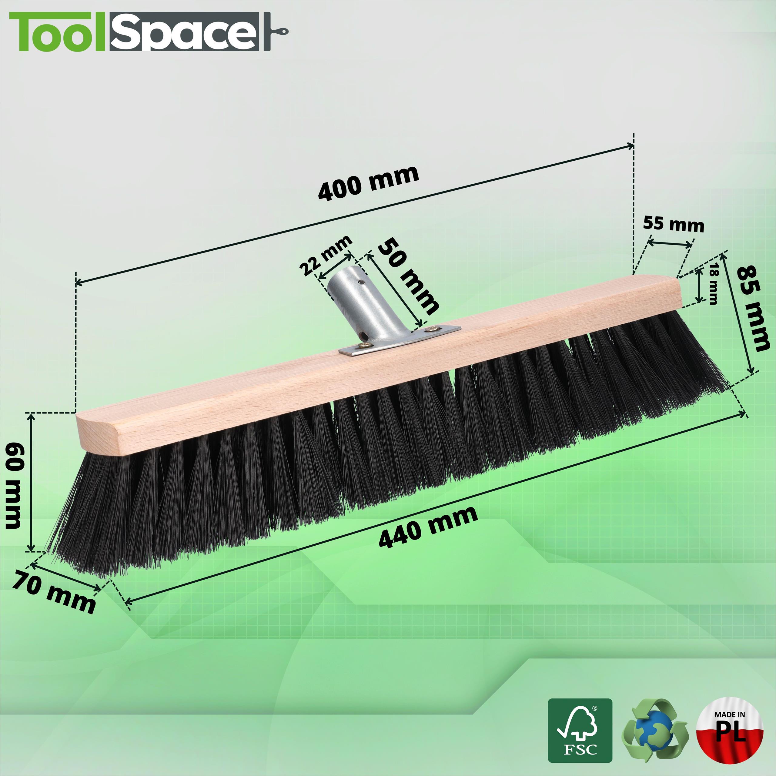 Zamiatacz nylon 40 cm Toolspace znajduje swoje zastosowanie zarówno w gospodarstwie i jego przestrzeni przydomowej, jak i w warsztacie, magazynie, hali, itp. Gęste włosie powoduje, że można swobodnie zbierać wszelkie drobne okruszki nie rysując przy tym podłogi.