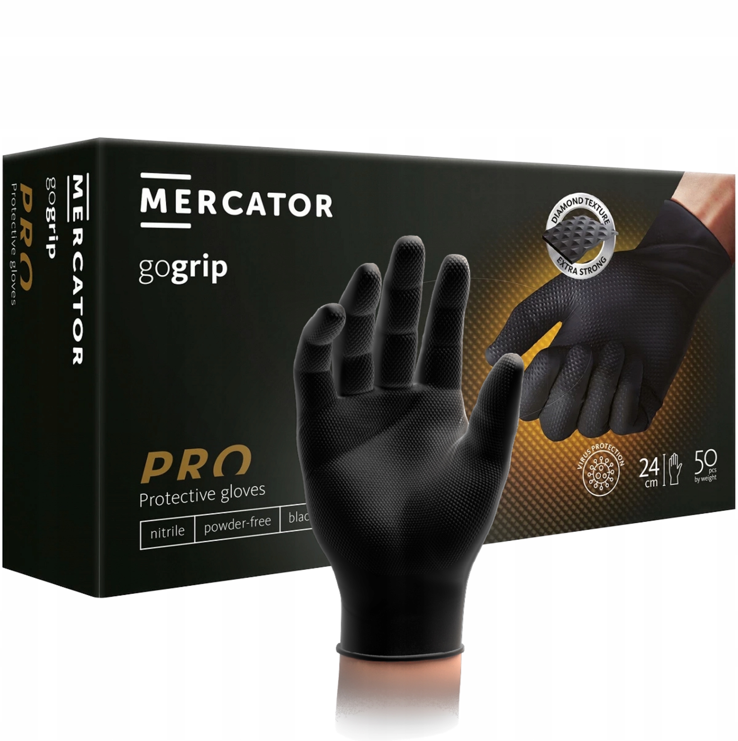 Wyjątkowo elastyczne MERCATOR gogrip są 2 razy grubsze od standardowych rękawiczek dostępnych na rynku. Te wykonane z trwałego nitrylu rękawice, cechują się unikalną diamentową teksturą 3D, która sprawia, że Twój chwyt jest mocny i stabilny a równocześnie nie ogranicza Twojej precyzji. Oryginalna struktura MERCATOR gogrip sprawi, że możesz obsługiwać urządzenia mobilne bez zdejmowania rękawiczek. Dodatkowo zrewolucjonizowana diamentowa tekstura 3D zapobiega potliwości dłoni w trakcie użytkowania, co podwyższa komfort pracy, minimalizując ryzyko uszkodzeń skóry dłoni.