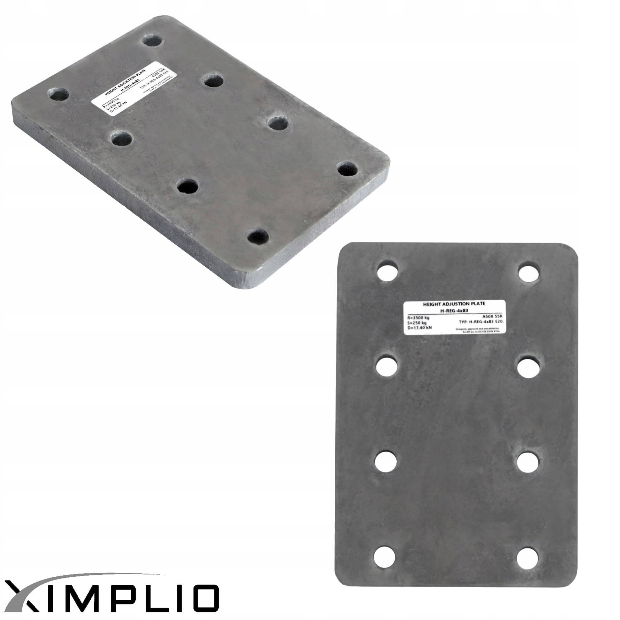 Blacha 4x83 mm wyposażona jest w cztery rzędy otworów, co umożliwia zamocowanie we wszystkich hakach z rozstawem otworów do przykręcenia kuli - 83x56 mm.