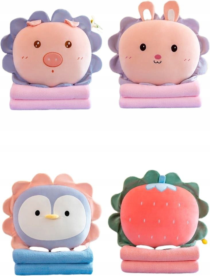 Maskotka to produkt uniwersalny i wielofunkcyjny, który zajmuje mało miejsca dzięki temu że kocyk schowany jest w maskotce świetnie nada się na podróże autem samolotem lub pociągiem.