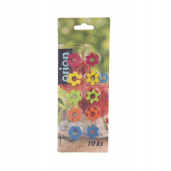 Zestaw dziesięciu sztuk kolorowych znaczników na szklanki lub kieliszki. W zestawie: 5x znaczniki kwiatki o średnicy 2 cm, 5x znaczniki kwiatki o średnicy 2,5 cm. Znaczniki zamontujemy w łatwy sposób, możemy wykorzystać je wielokrotnie - wystarczy umyć je po użyciu. Znaczniki świetnie sprawdzą się podczas spotkań dorosłych, ale również podczas organizacji przyjęć dla dzieci. Znaczniki pozwolą nam w łatwy sposób odnaleźć swoją szklankę lub kieliszek. Z ich pomocą goście nie pomylą swoich szklanek z napojami. Oryginalny produkt czeskiej marki Orion. Wyprodukowano zgodnie z europejskimi standardami.