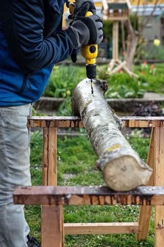 Колышки должны быть помещены в срезанный здоровый ствол лиственного дерева. С интервалом в 15 см сверлить в стволе отверстия такого диаметра, как колышки, и глубина больше на 1 см от их длины. В отверстиях ставим колышки с мицелием, место прививки закрепляем воском. Привитые деревянные бревна его следует положить в полиэтиленовый пакет или обернуть полиэтиленовой пленкой. Хранить в темном помещении, в температура 20-25С. в зависимости от вида древесины, в течение 4-10 месяцев пни будут покрываться белый мицелий. Привитые мицелием пни помещают в груды во влажных местах, лучше всего среди кустарников и зарослей. Вы должны защитить урожай от сильного солнечного света и ветра. Оптимальная температура во время формирования плодовых тел-15-25С и влажность 80-85%. Плодовые тела они образуются чаще всего весной и осенью. Между коллекциями есть перерывы, длящиеся от нескольких недель до нескольких месяцев.