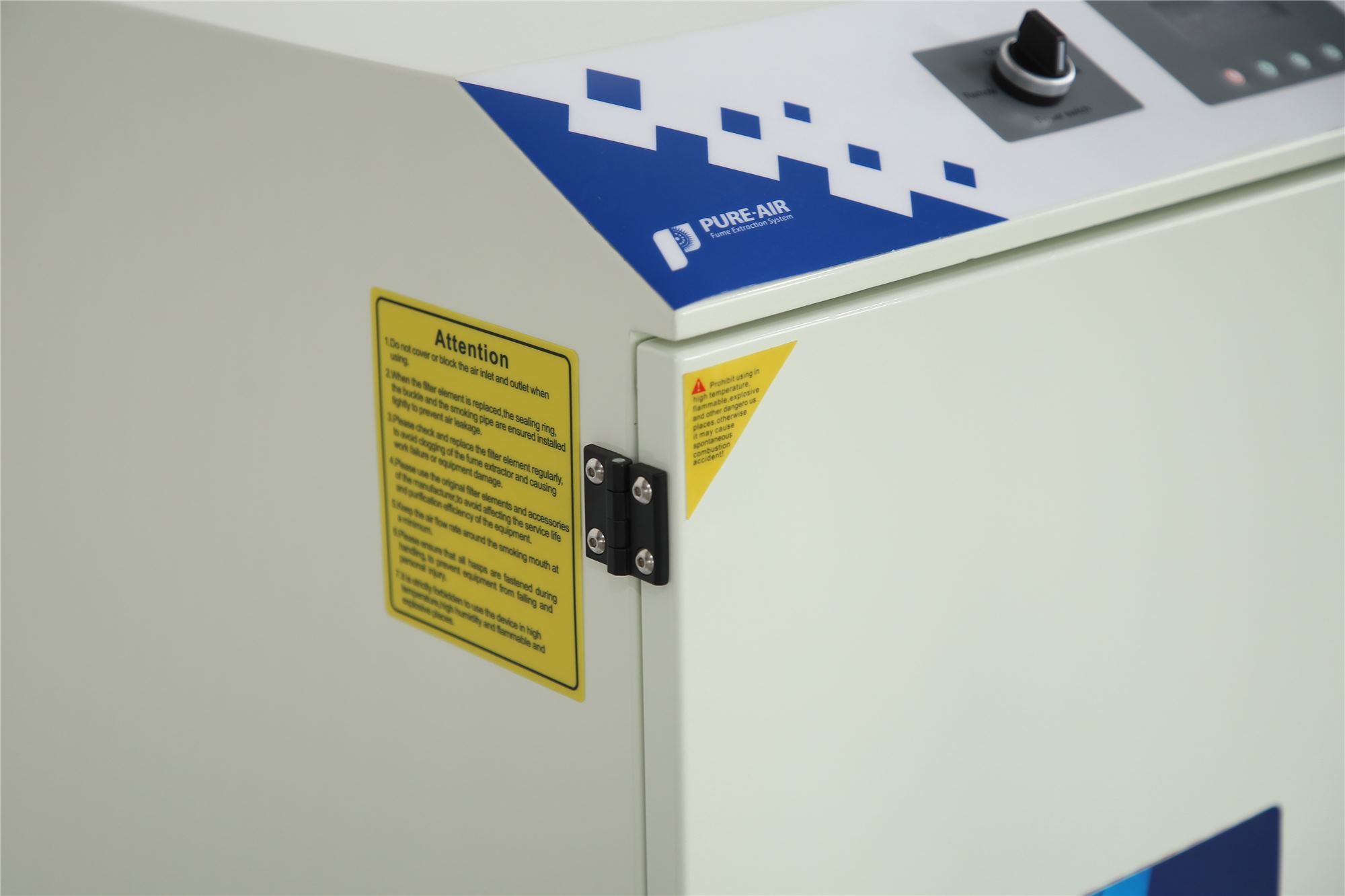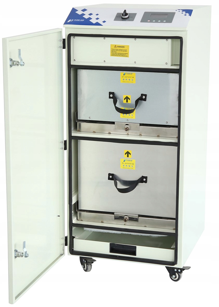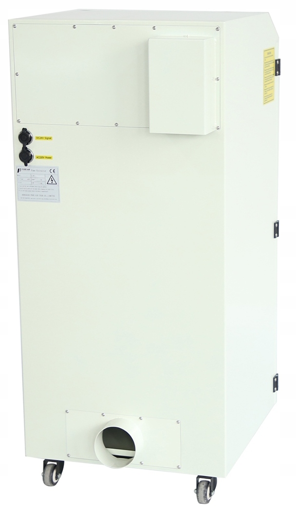 Pochłaniacz wraz z zamontowanym w środku wentylatorem absorbują wszelakie spaliny, opary, kurze powstające w wyniku cięcia z maszyn przemysłowych takich jak plotery laserowe, spawarki itp.