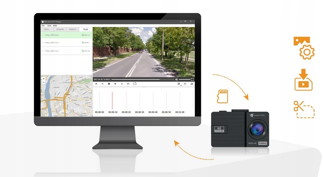 Zarejestruj każdą podróż z wideorejestratorem Navitel R900 4K. Urządzenie wyposażone w sensor SONY 415(4K) STARVIS i 7-warstwową szklaną soczewkę zapewnia doskonałą jakość obrazu. Dodatkowo, posiada wbudowany mikrofon, nagrywanie w pętli i funkcję Autp-Start.