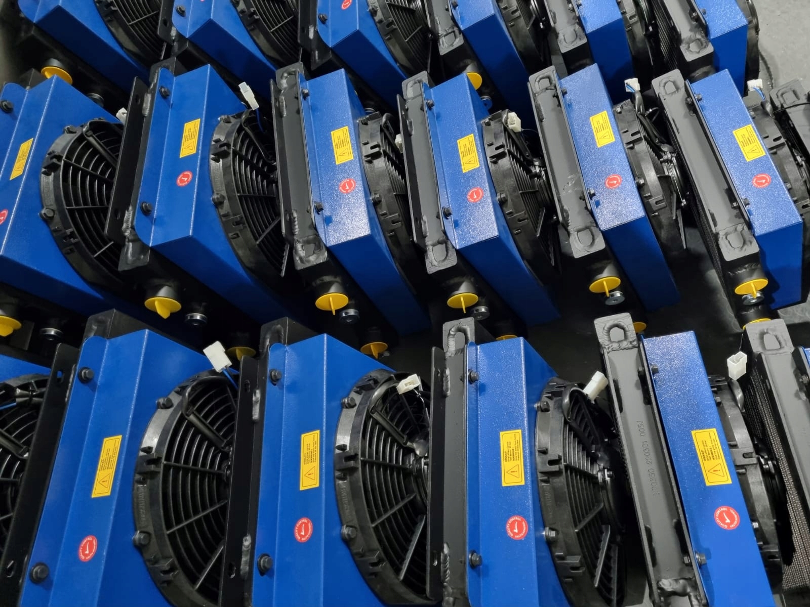 kompaktowa , bardzo lekka chłodnica oleju hydraulicznego , zaprojektowana do chłodzenia urządzeń , gdzie wymagane są wysokie osiągi i wydajność.