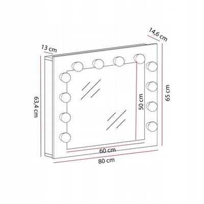 Duże lustro z 12 chłodnymi białymi diodami LED ułatwi wykonanie makijażu i stylizacji fryzury oraz nada wygląd profesjonalnego studia.