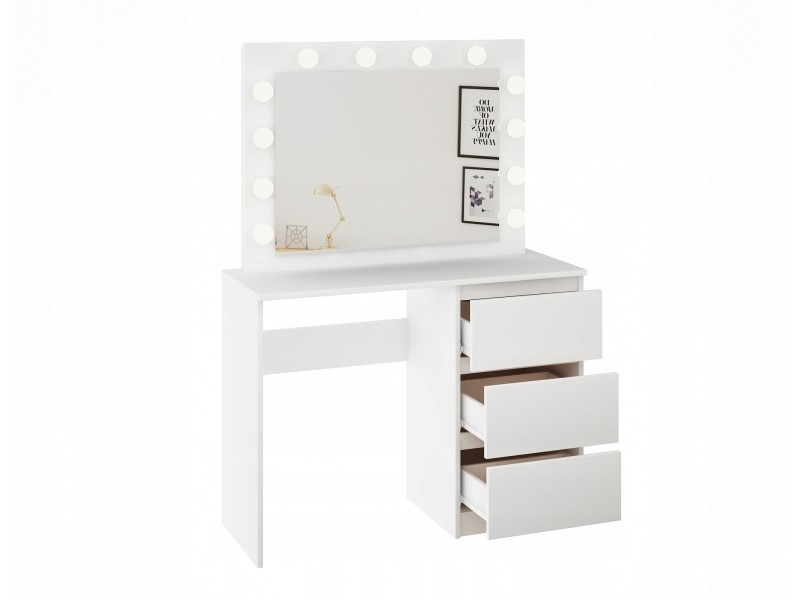 Po prawej stronie toaletki znajdują się 3 pojemne szuflady na kosmetyki i nie tylko.