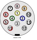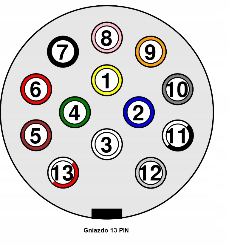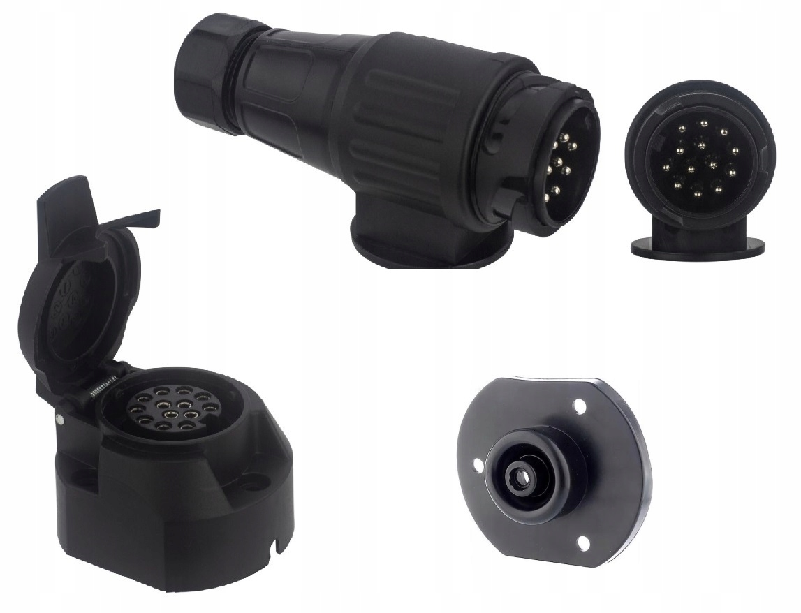 Przedmiotem sprzedaży jest komplet gniazdo + wtyczka (wkręcana) 12V 13 PIN - komplet plastikowy z podkładką gumową