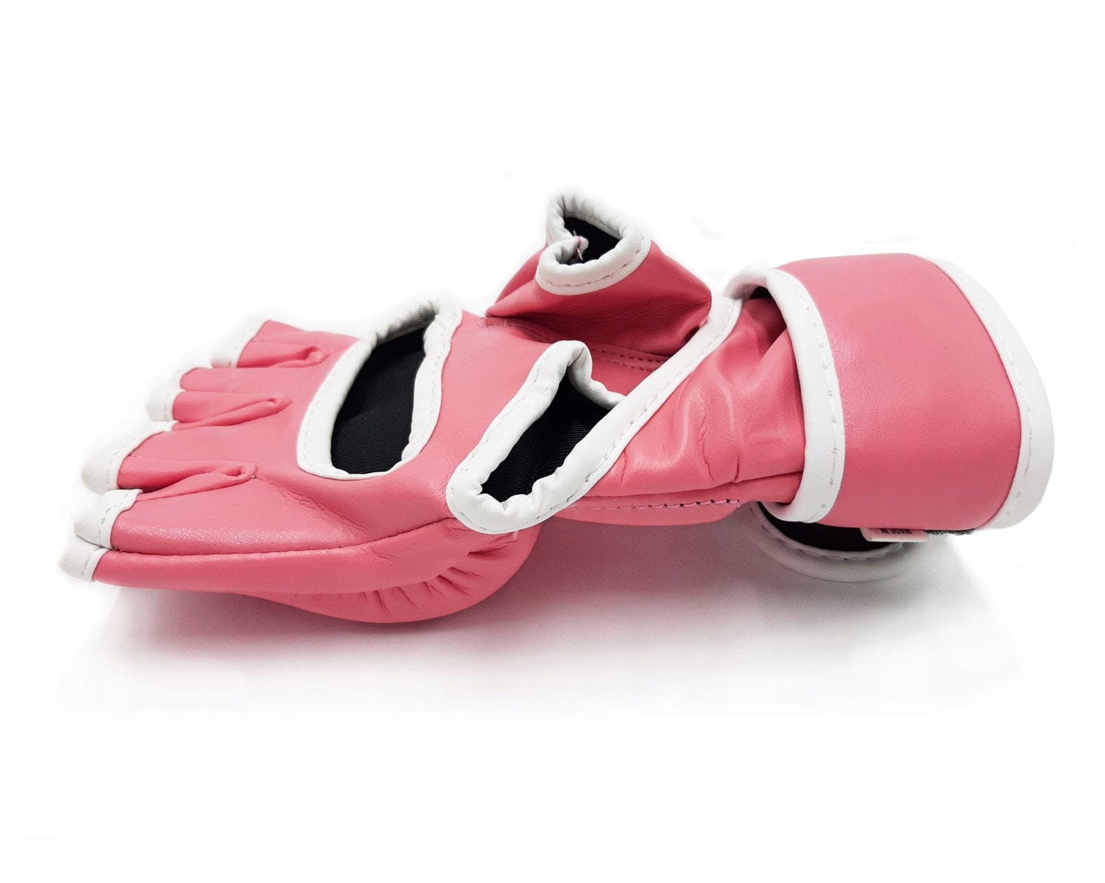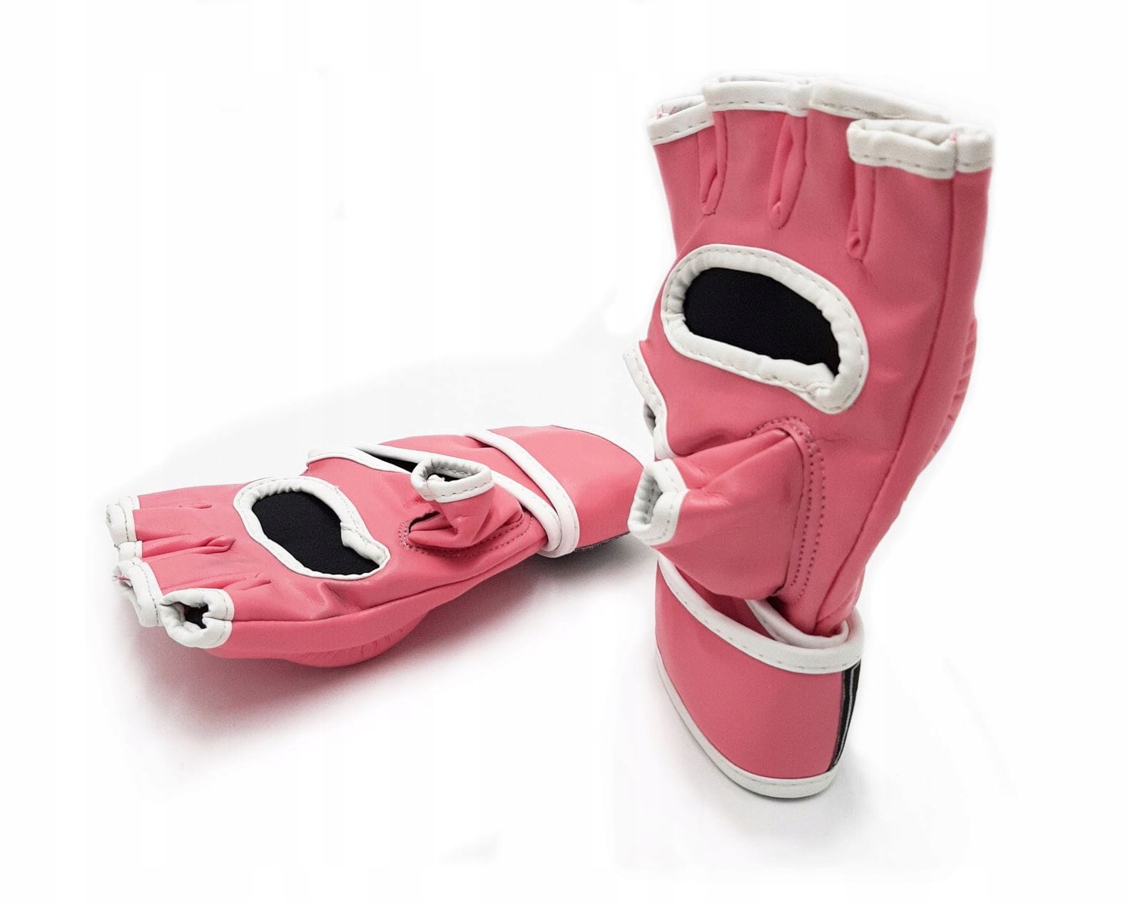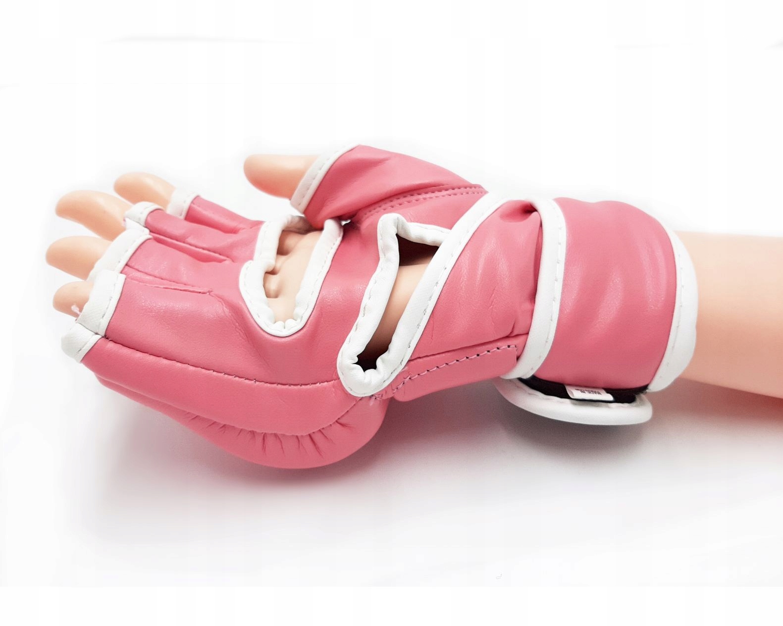 Wysoki mankiet z podwójnym zapięciem na rzep umożliwia łatwe dopasowanie rękawic do nadgarstka, zapewniając jednocześnie stabilność i odpowiednie ułożenie na dłoni. Konstrukcja z odkrytymi palcami i otwartym wnętrzem pozwala na pewny chwyt oraz swobodę ruchów, co jest niezwykle istotne podczas wykonywania technik chwytanych i uderzeniowych.