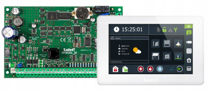 Панель сигнализации Satel INTEGRA 32 поддерживает от 8 до 32 входов и от 8 до 32 программируемые выходы. Имеет встроенный телефонный коммуникатор с функцией мониторинга, голосовое уведомление и дистанционное управление. Управление системой возможно благодаря манипуляторам ЖК-дисплеев, зональных клавиатур, пультов дистанционного управления и бесконтактных карт, а также удаленно-с помощью компьютера или мобильный телефон.