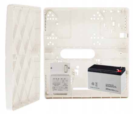 Она оборудована анти-саботаж: перед открытием крышки и отрывом от стены. установки сетевых трансформаторов на 40 или 60 ва и резервного аккумулятора на 12 В 7 или 7,2 Ач. внутри могут быть размещены беспроводные устройства вместе с антеннами.