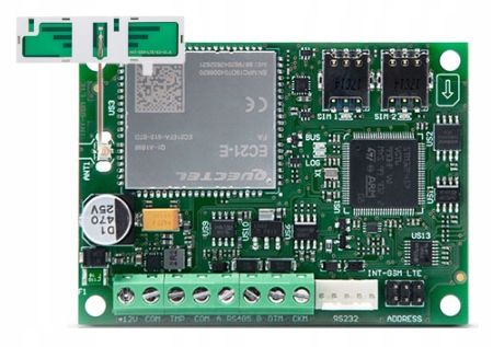 MODUŁ KOMUNIKACYJNY GPRS Satel INT-GSM LTE umożliwia centralom alarmowym serii INTEGRA i INTEGRA Plus komunikację przez sieć 2G, 3G lub 4G. Pracuje na magistrali manipulatorów centrali alarmowej. Obsługuje 2 karty SIM, przez które może jednocześnie odbierać wiadomości i połączenia przychodzące. Wszystkie transmisje GPRS są szyfrowane w standardzie AES-192.