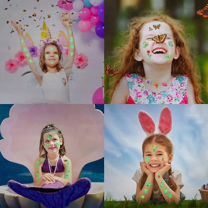Название Tatuaże zmywalne dla dzieci ŚWIECĄCE W CIEMNOŚCI 15 ARKUSZY DZIECIĘCE