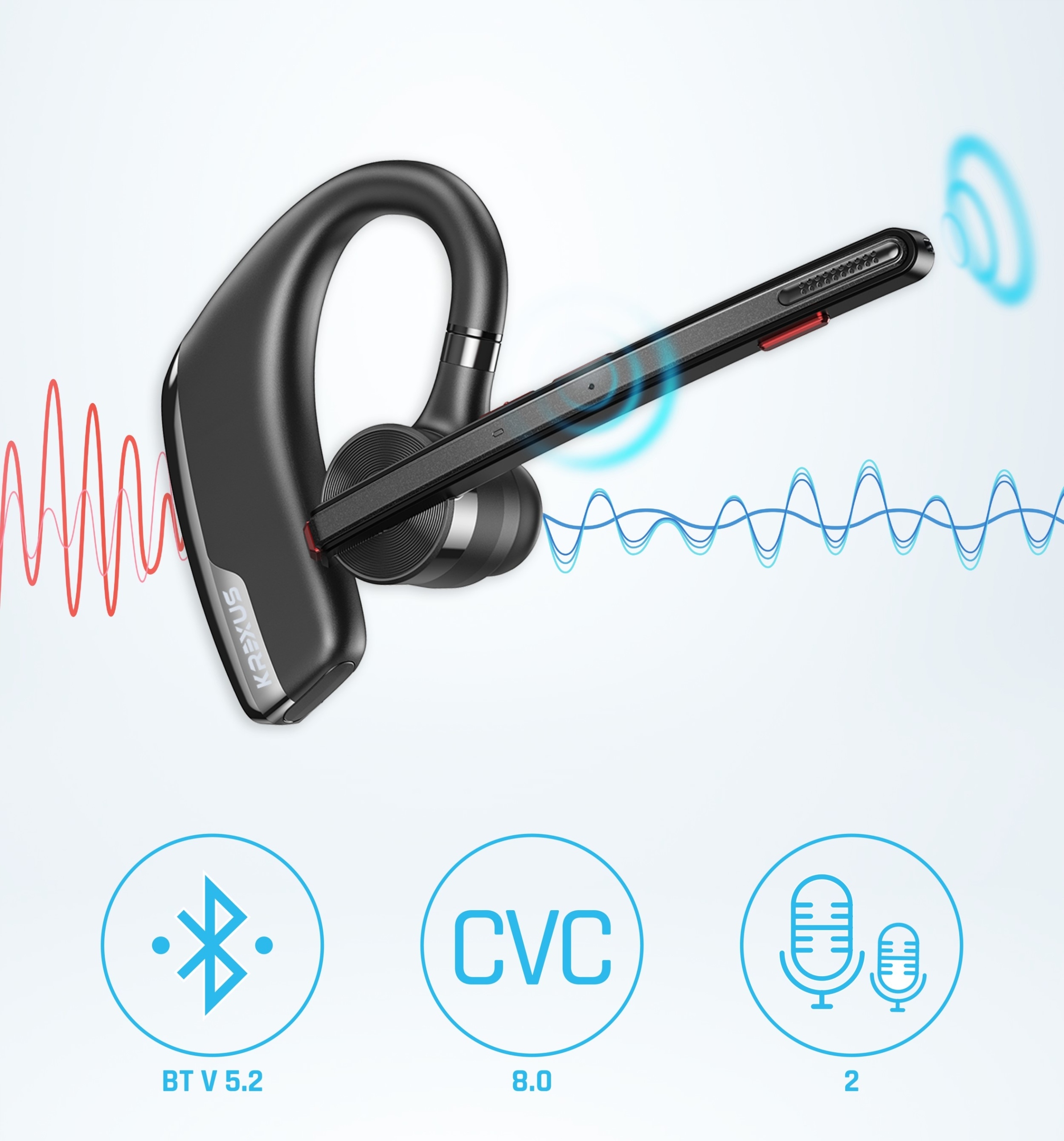 Słuchawka BT marki Krexus zbudowana jest z wysokiej klasy komponentów. Elegancka i wytrzymała obudowa kryje w sobie najlepsze dostępne chipy i układy.