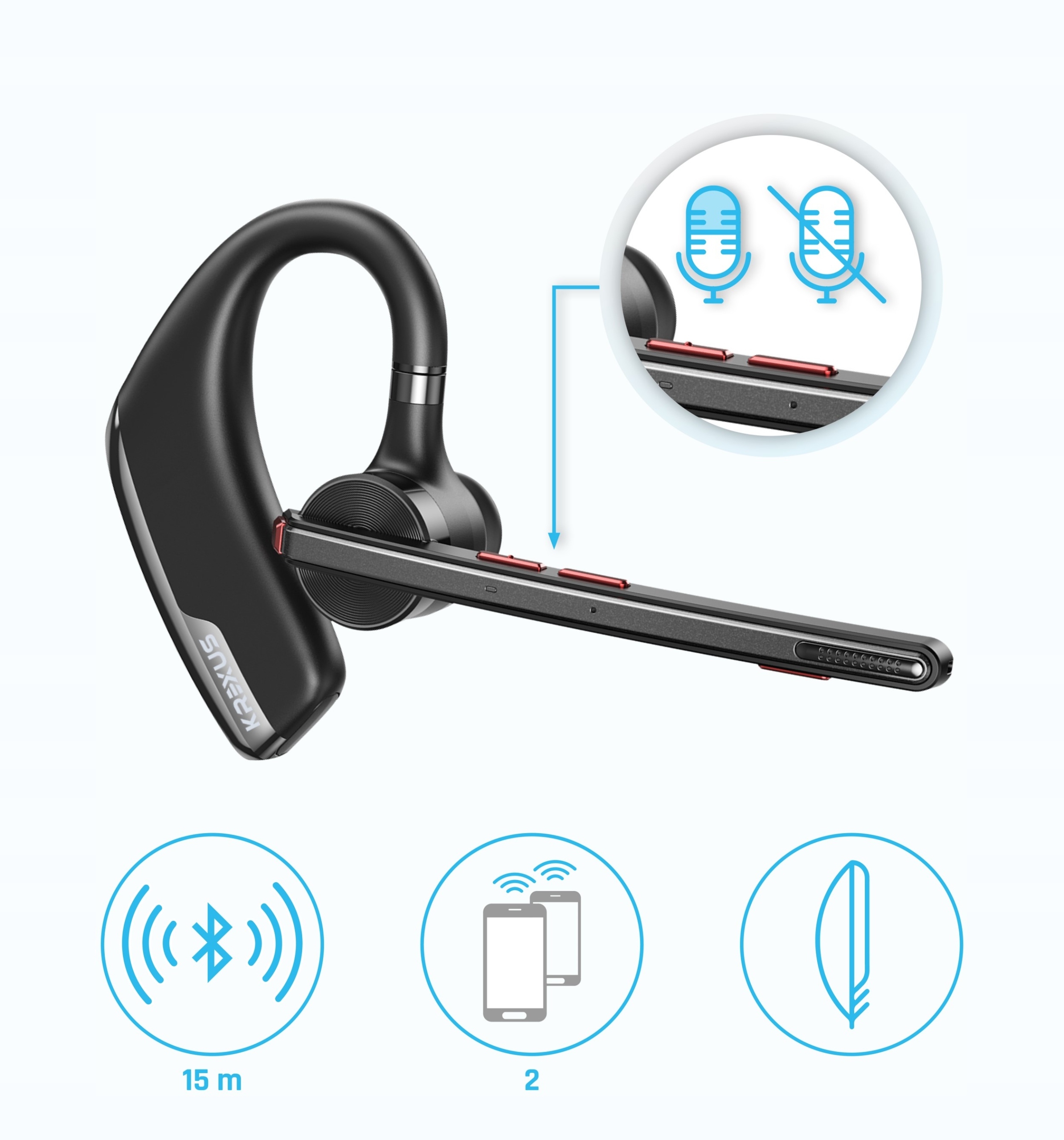 Nasza słuchawka BT Krexus charakteryzuje się dużym zasięgiem bezprzewodowym, co oznacza że odległość między zestawem Bluetooth a urządzeniem może mieć 15m, a połączenie nadal będzie czyste.