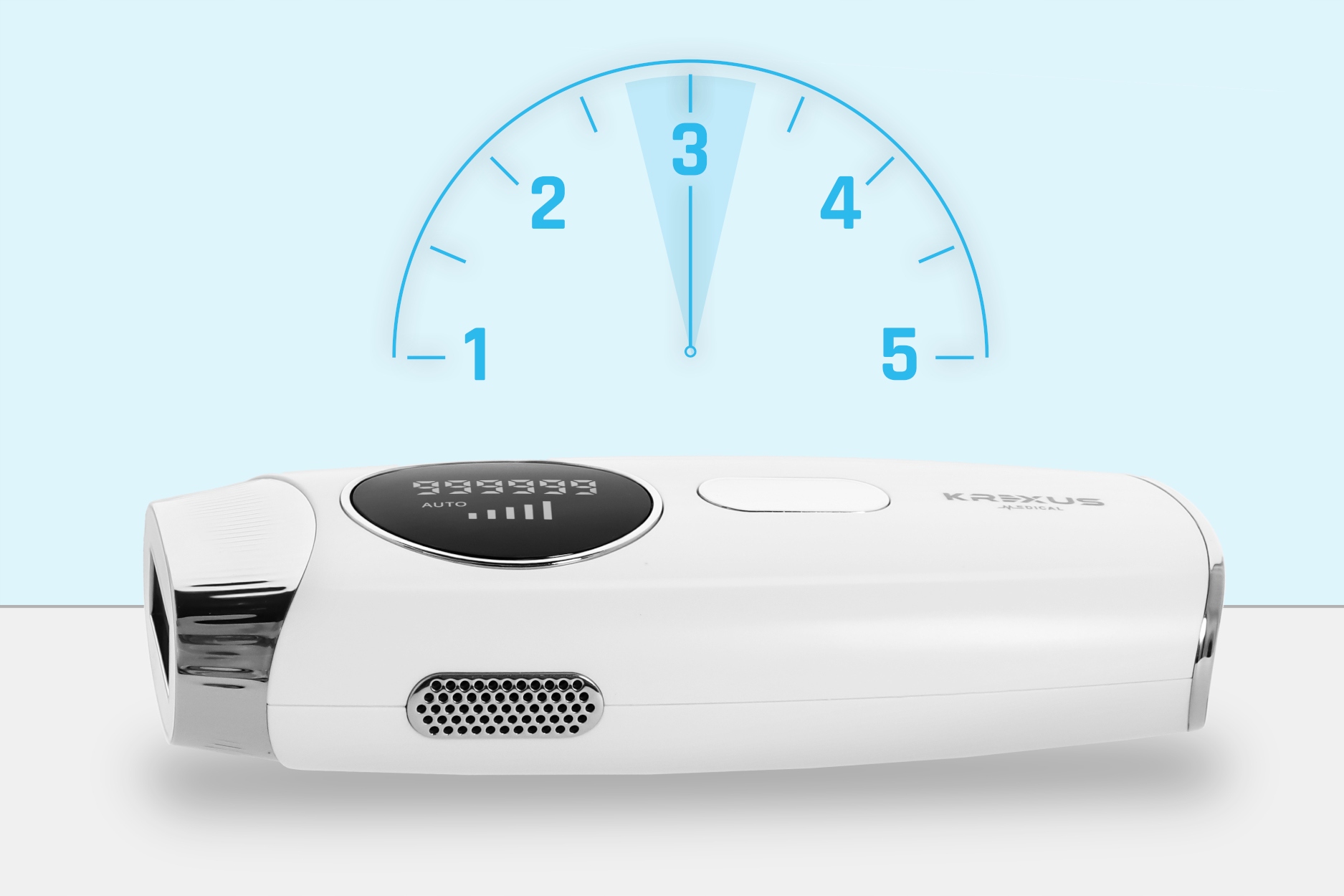 Вы можете настроить мощность устройства в соответствии с вашими индивидуальными потребностями, в зависимости от депиляционной части тела, чтобы сохранить максимальный комфорт и эффективность.
