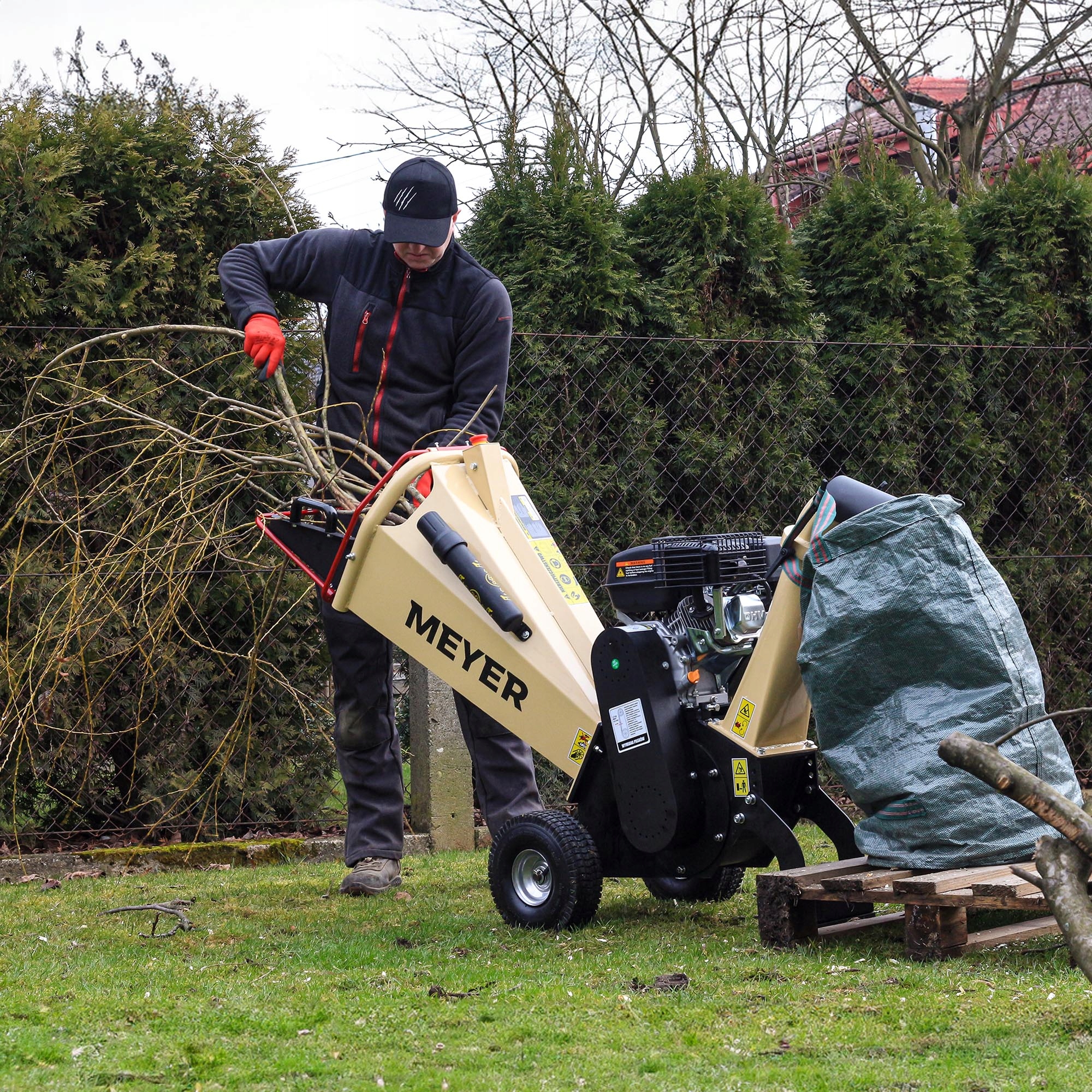 Быстро и легко измельчайте большое количество садовых отходов с помощью этого мощного и мобильный измельчитель марки Meyer!