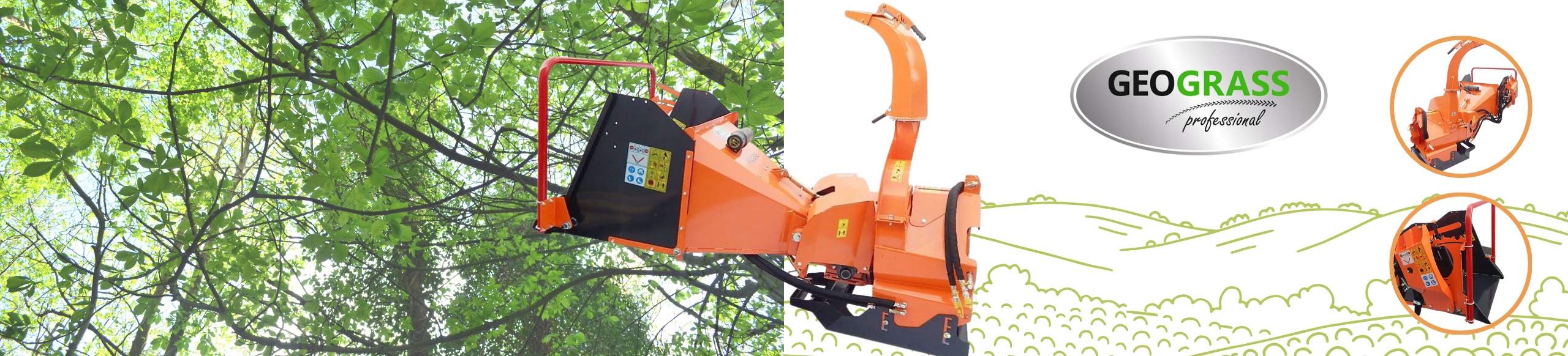 RĘBAK marki Geograss model WC52R to ciężki rębak do gałęzi o wysokiej wydajności pracy z mocowaniem do traktora składający się z solidnej obudowy, w której znajduje się mechanizm tnący składający się z masywnej tarczy i 4 solidnych noży.