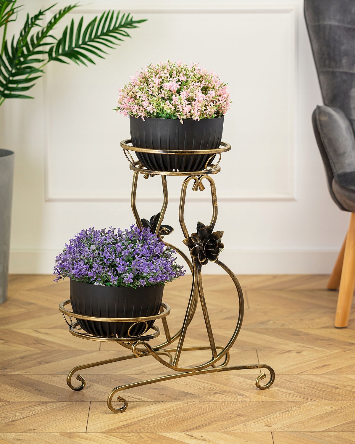Klasyczny stojak na kwiaty w industrialnym stylu idealny do podkreślenia ulubionych roślin i wybraną przestrzeń