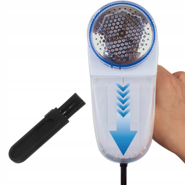 Golarka posiada zbiorniczek, który zbiera resztki z tkaniny i ubrania. Rozwiązanie to pozwala na zachowanie porządku w trakcie odnawiania tkanin.