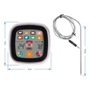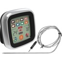 Termometr kuchenny ma niewielkie rozmiary. Kolorowy graficzny wyświetlacz skryty jest w kwadratowej srebrno-czarnej obudowie wykonanej z tworzywa sztucznego.