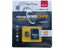 Karta pamięci IMRO MicroSDHC 8GB klasy 10 + Adapter. Polecana szczególnie do rejestratorów, aparatów, telefonów i kamer o rozdzielczości FullHD. Karta IMRO polskiego producenta została zbudowana na komponentach najwyższej jakości renomowanych producentów kości pamięci takich jak Samsung, Micron. Karty IMRO testowane na etapie produkcji, bardzo dobrej jakości, niezawodna i szybka karta najwyższej klasy 10.