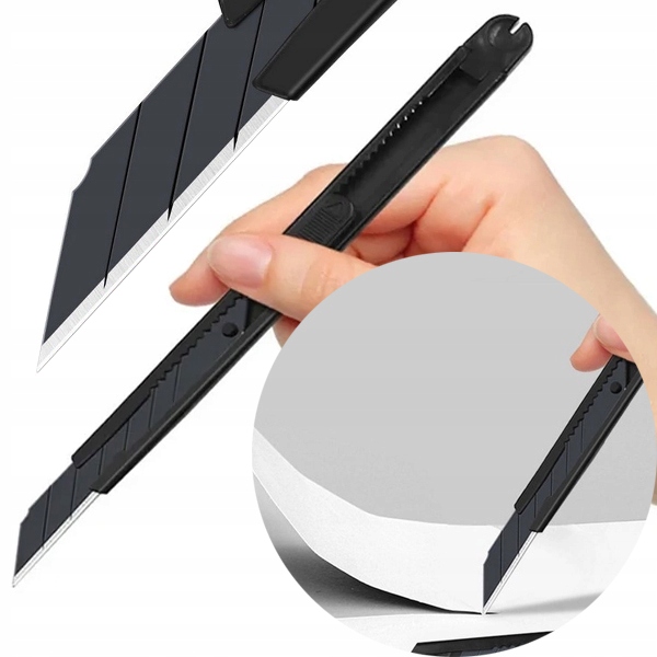 Nożyk introligatorski z czarnym, ergonomicznym uchwytem i wysuwanym ostrzem 9mm to niezastąpione narzędzie dla profesjonalistów zajmujących się introligatorstwem, jak również dla majsterkowiczów.