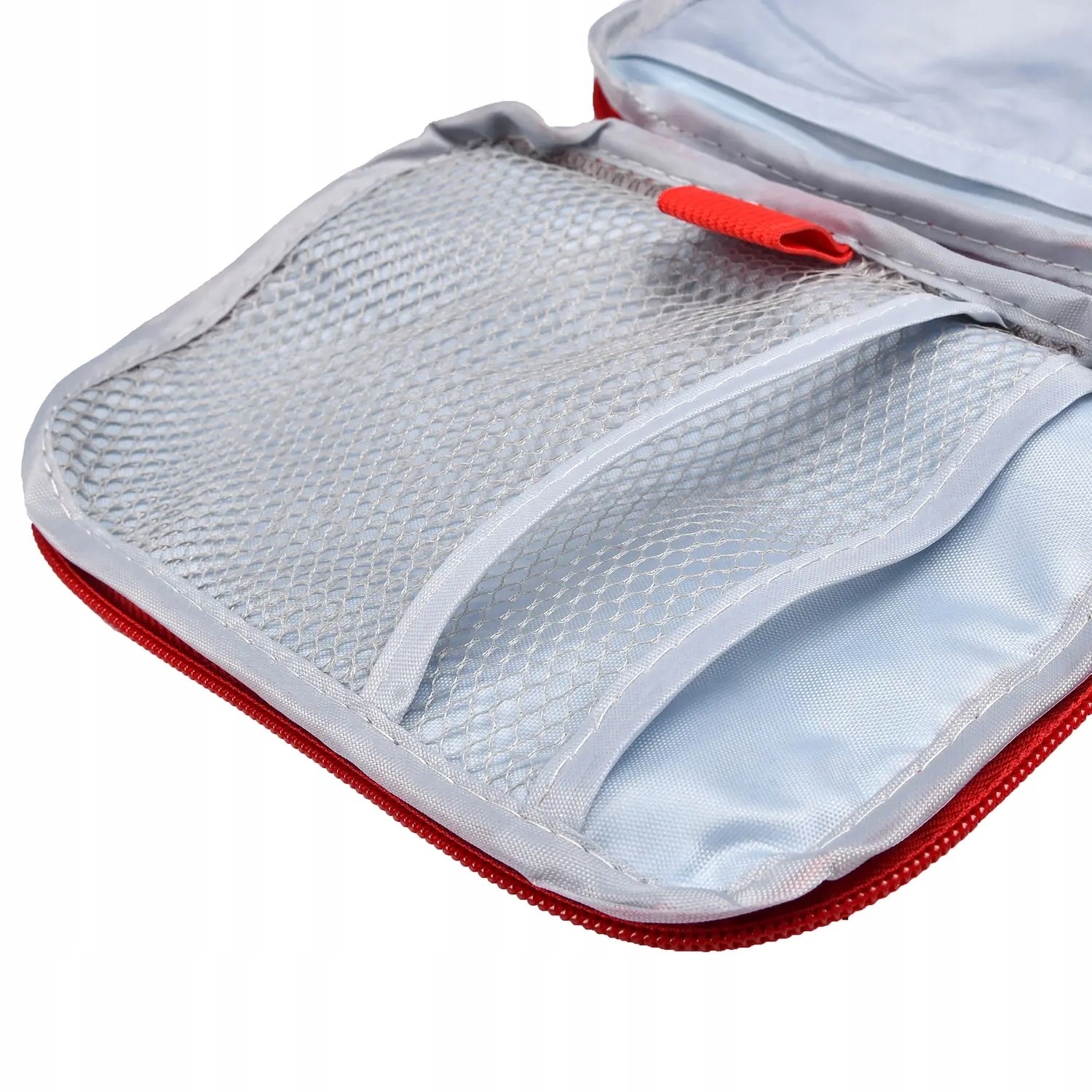 Druga część torby posiada dwie elastyczne kieszonki siatkowe, które idealnie nadają się do przechowywania wacików, bandażów i różnych tubek.