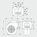 Dzięki zwartej obudowie wentylator może być montowany bezpośrednio na przewodzie wylotowym lub do urządzenia technologicznego przy pomocy kołnierza przyłączeniowego śrubami M 5 lub M6.
